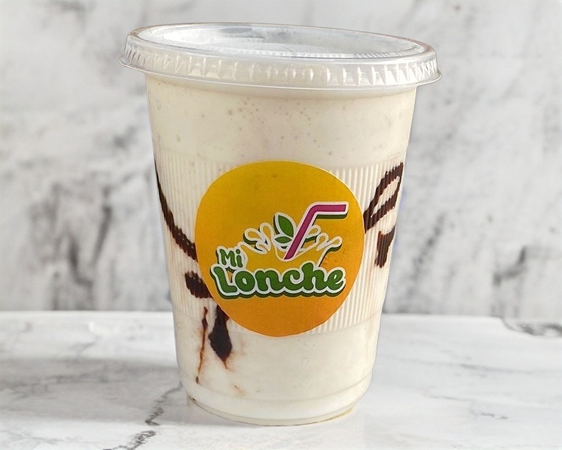 yogurt natural, papaya, melon, platano, fresa, manzana roja, granola, miel y lecherita