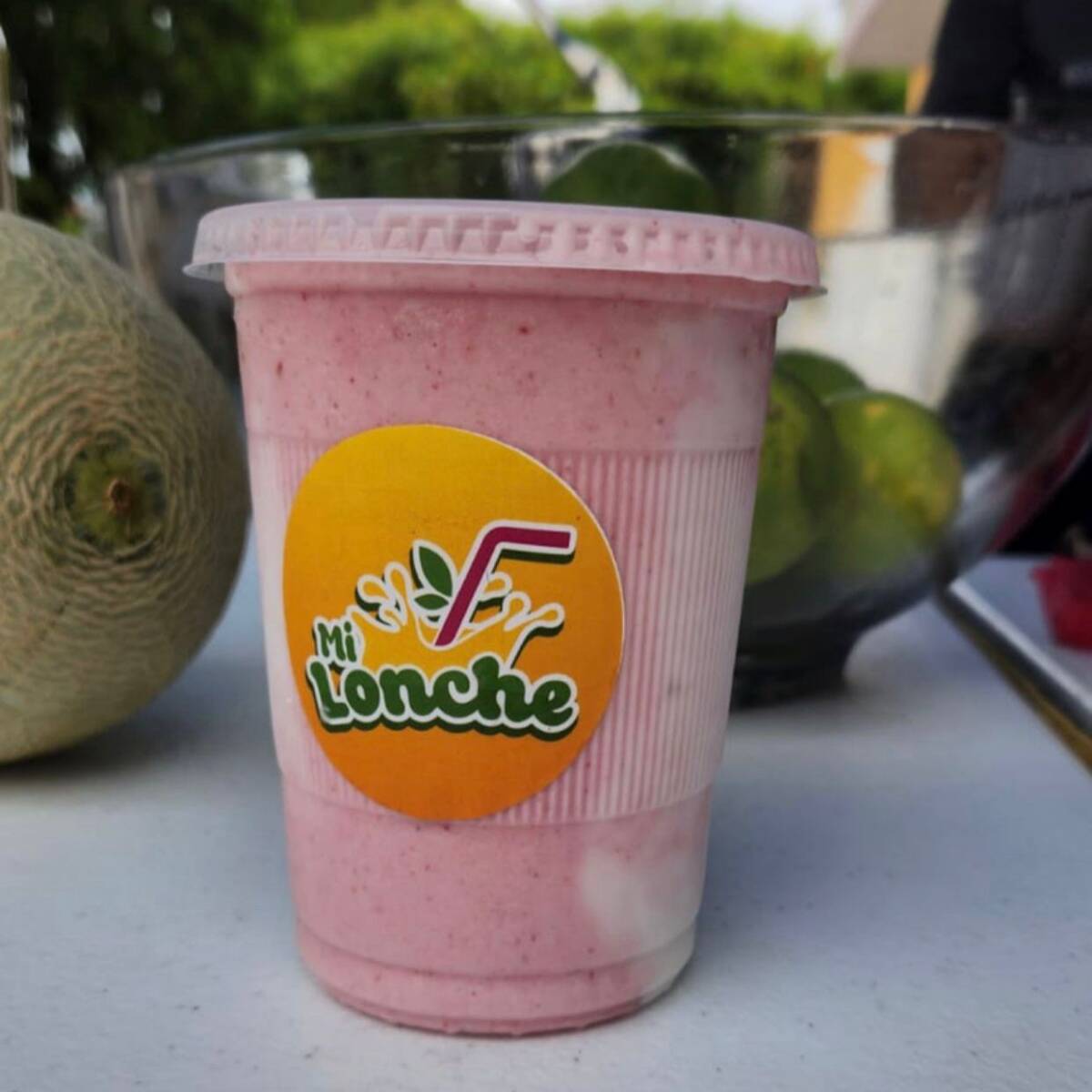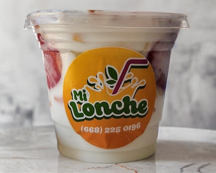 yogurt natural, papaya, melon, platano, fresas, manzana roja, granola, miel y lecherita