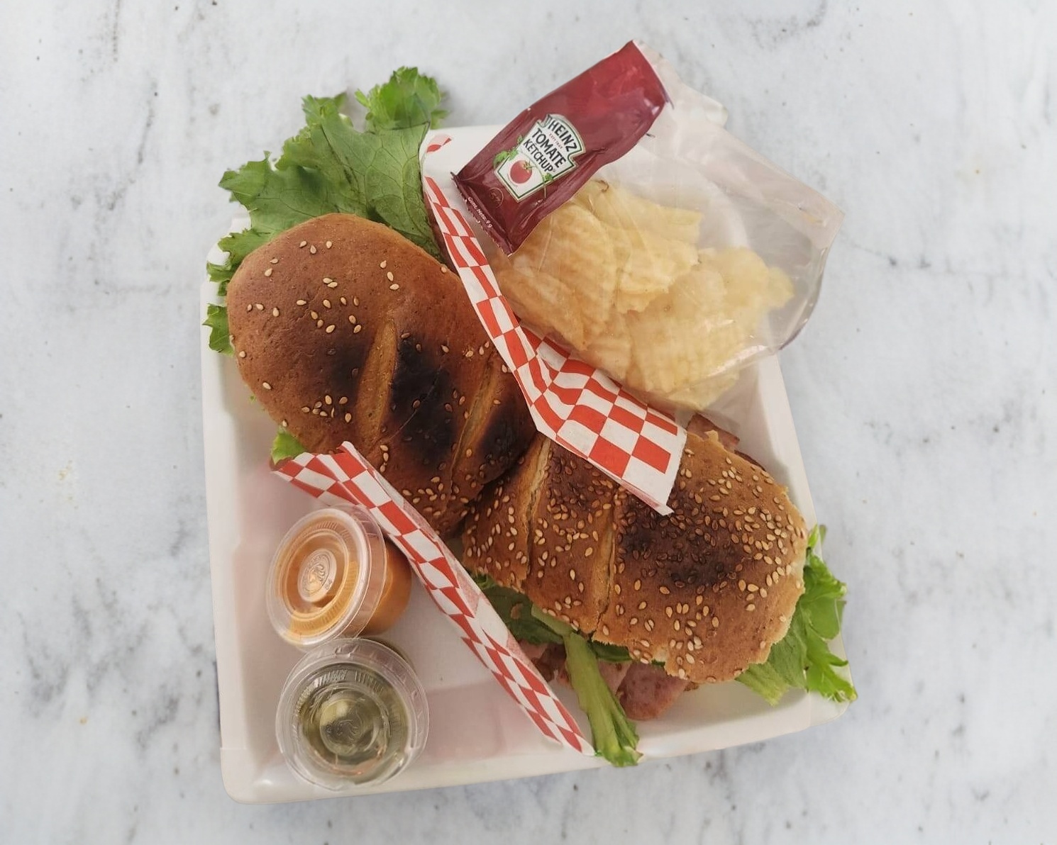 pan de baguette, pollo, jamon, queso chihuahua, lechuga, tomate, cebolla, mayonesa, catsup, chile curtido, aderezo chipotle y papitas secas