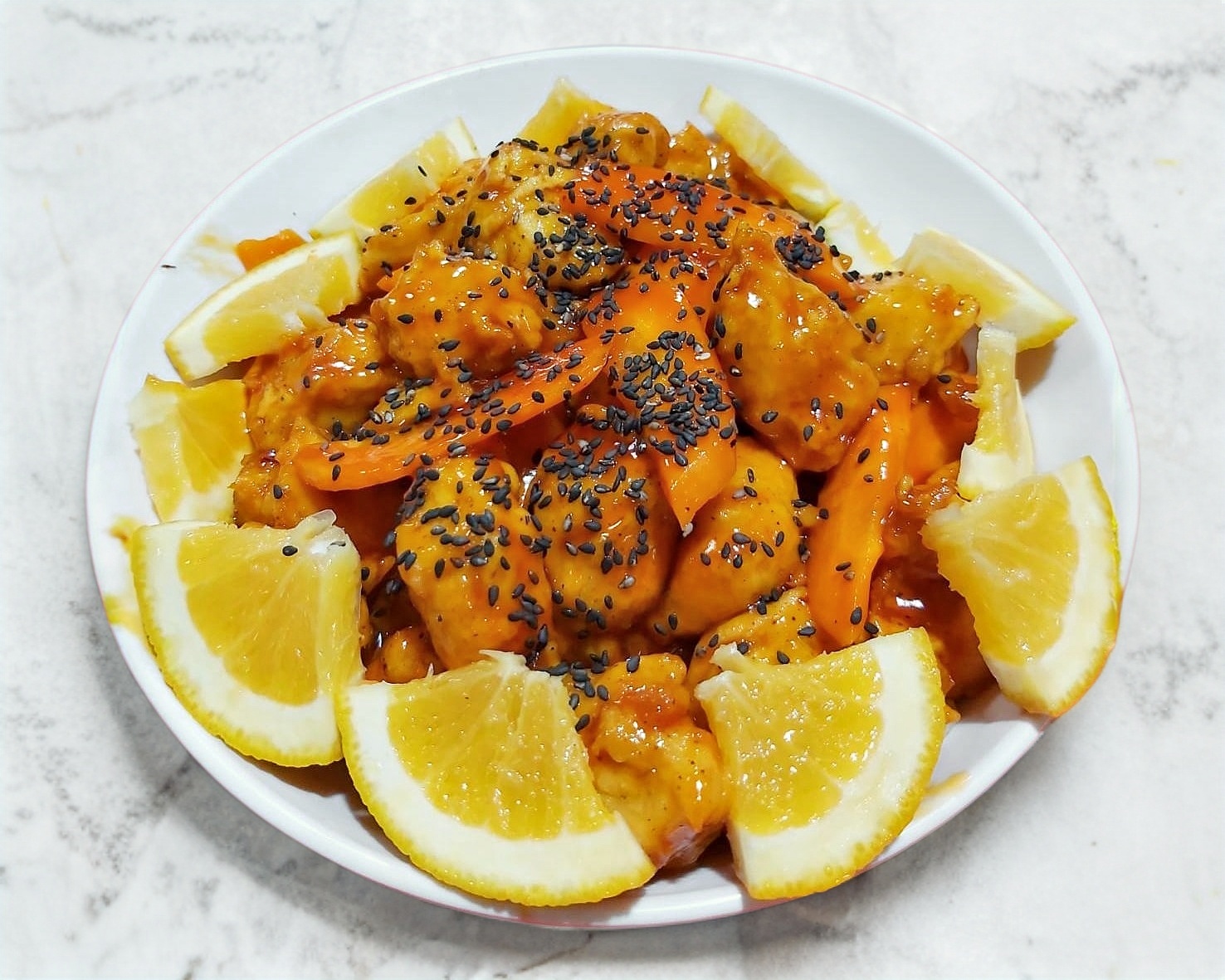 Zanahoria, naranja natural, salsa naranja y arroz a elegir blanco o frito.