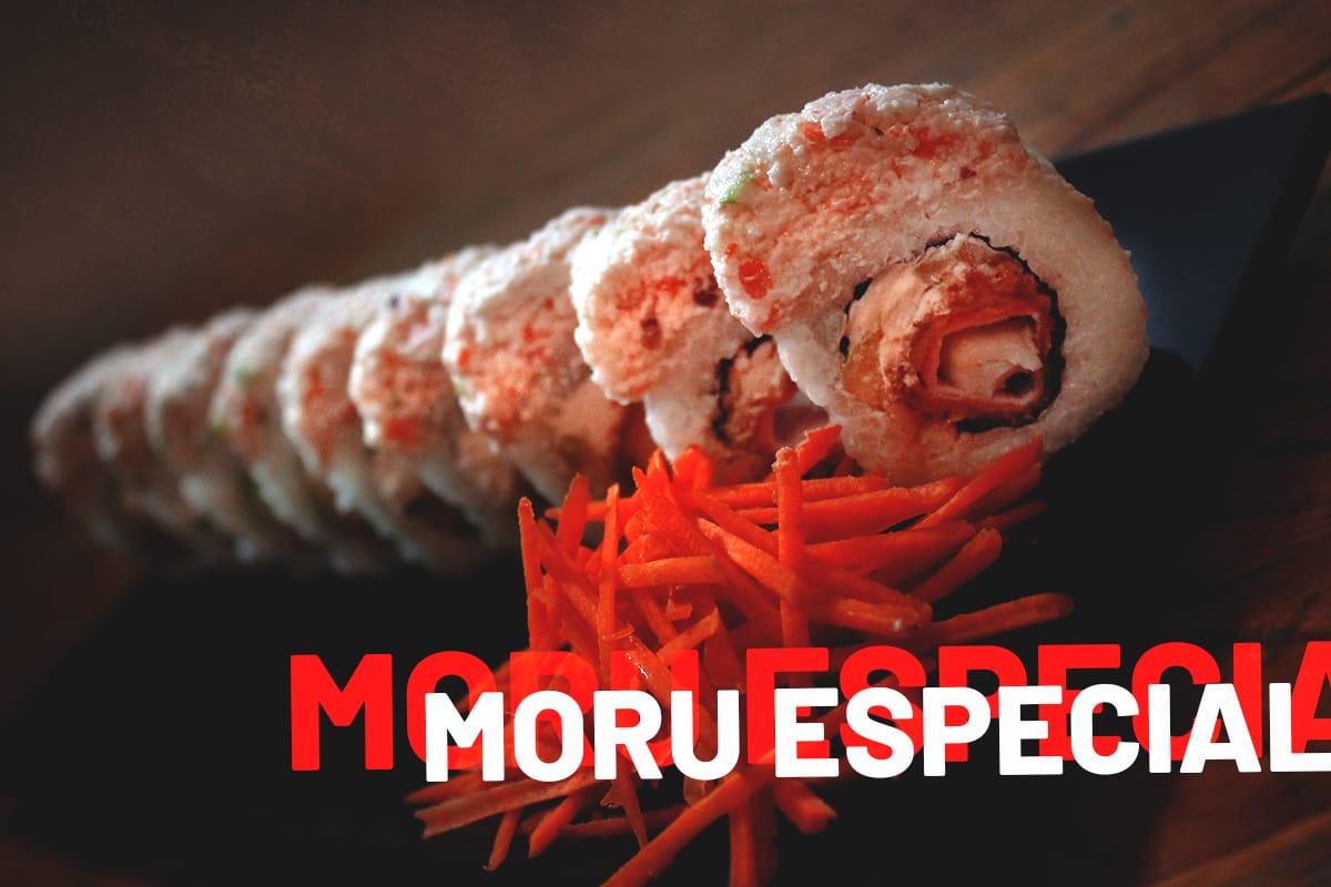 Rollo empanizado.por dentro pollo, res, queso philadelphia, aguacate y pepino. Gratinado por fuera con tocino y chile serrano.
