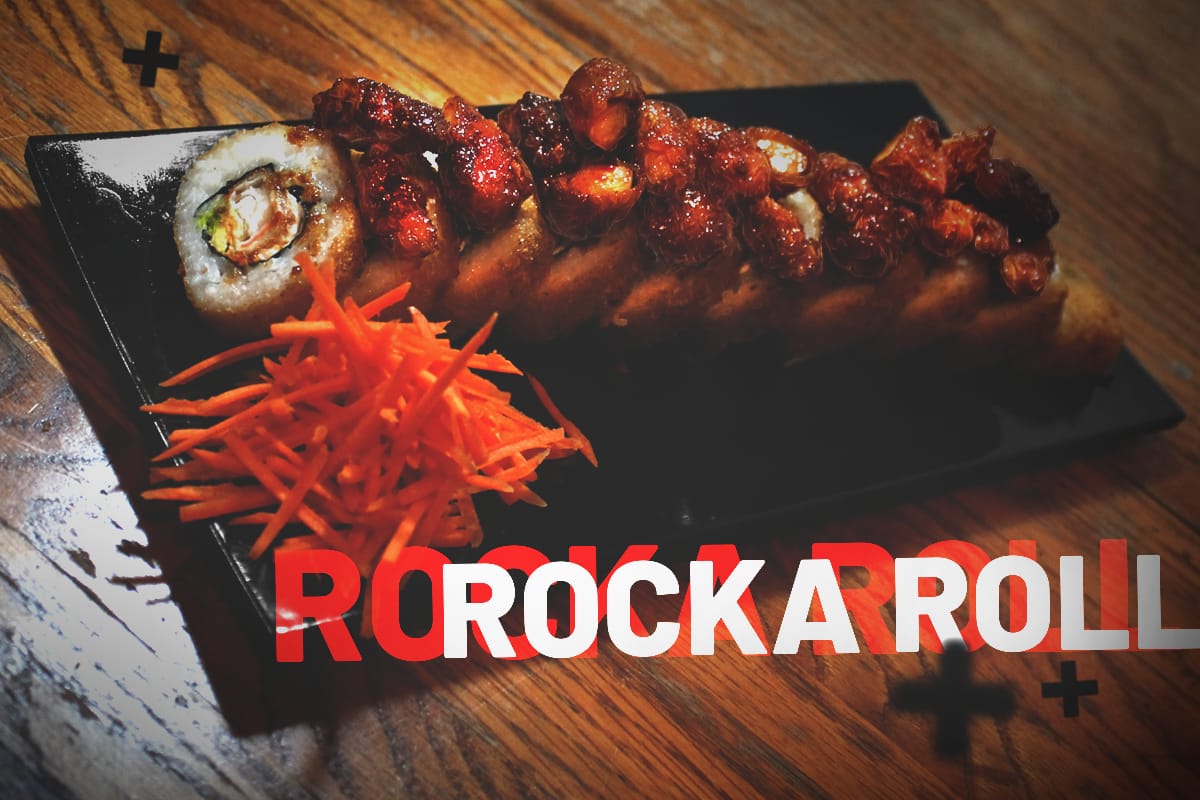 Res, pollo, aguacate, queso Philadelphia, cubierto de Tampico, aguacate y ajonjolí negro.