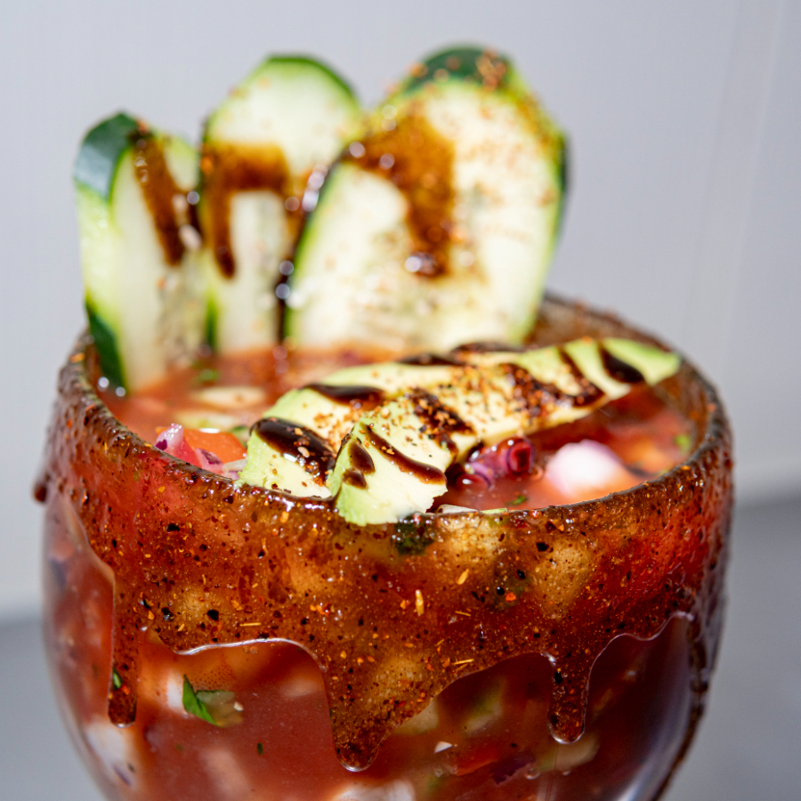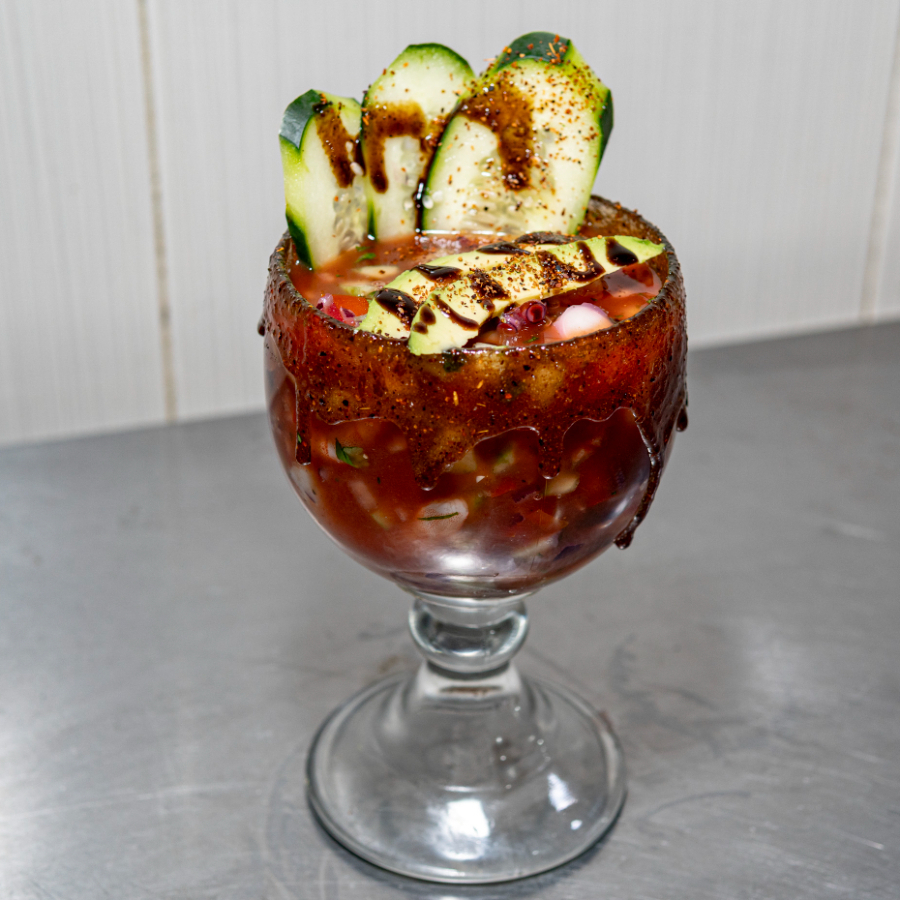 Litro. camarón pulpo tomate pepino cebolla cilantro clamato