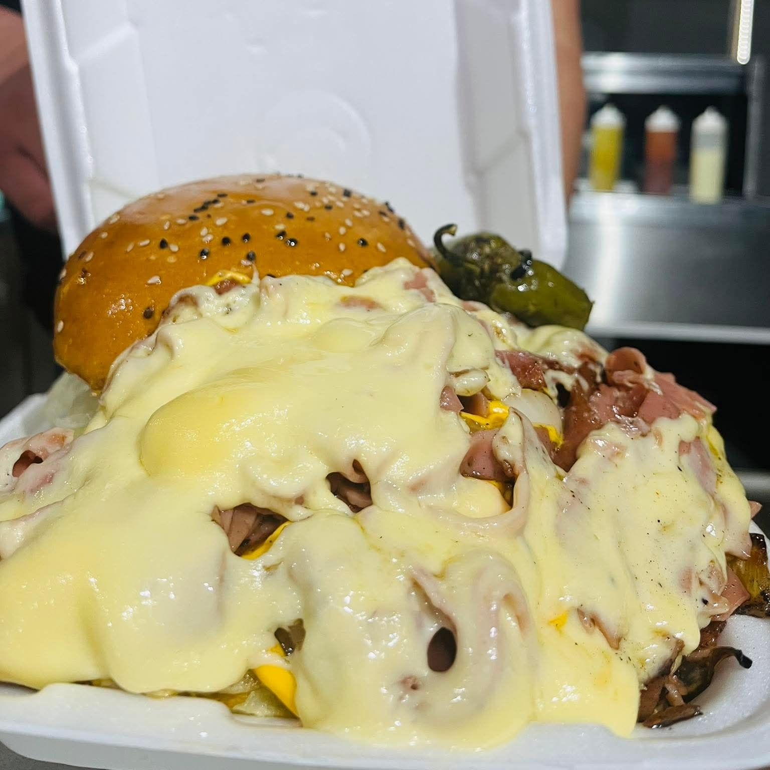 Carne asada jamón Philadelphia tomate cebolla lechuga mayonesa