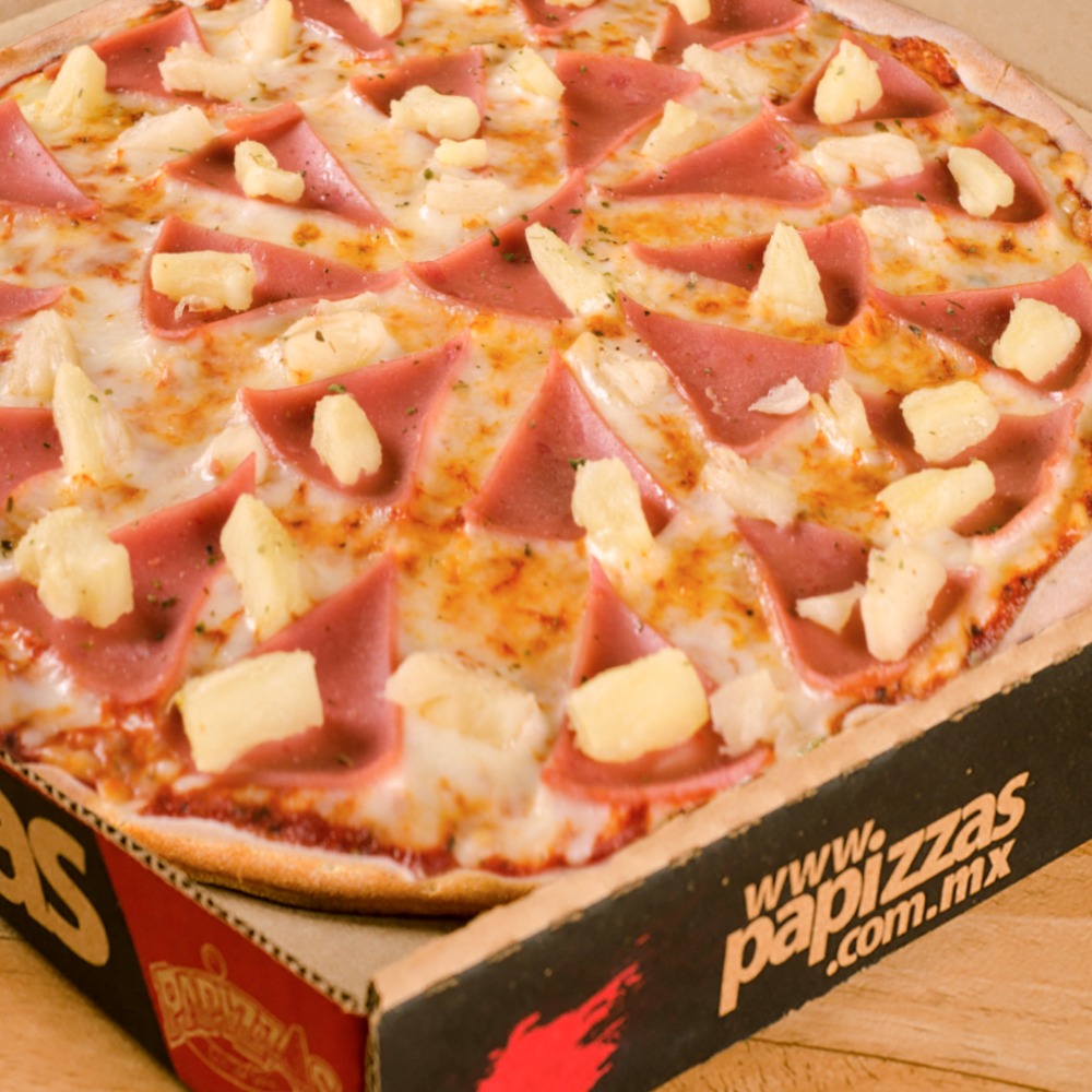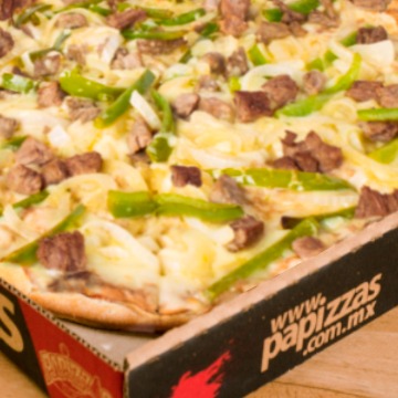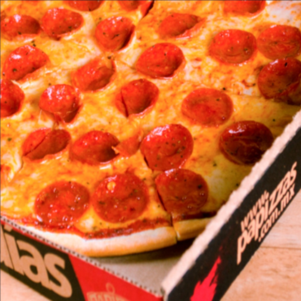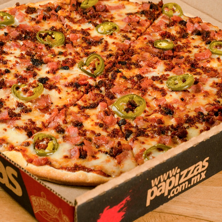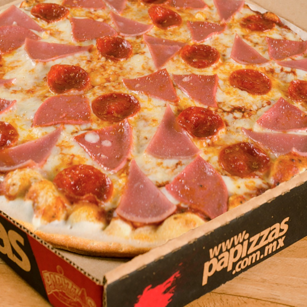 Peperoni, salchicha italiana, aceituna negra, morron, cebolla blanca, y parmesano