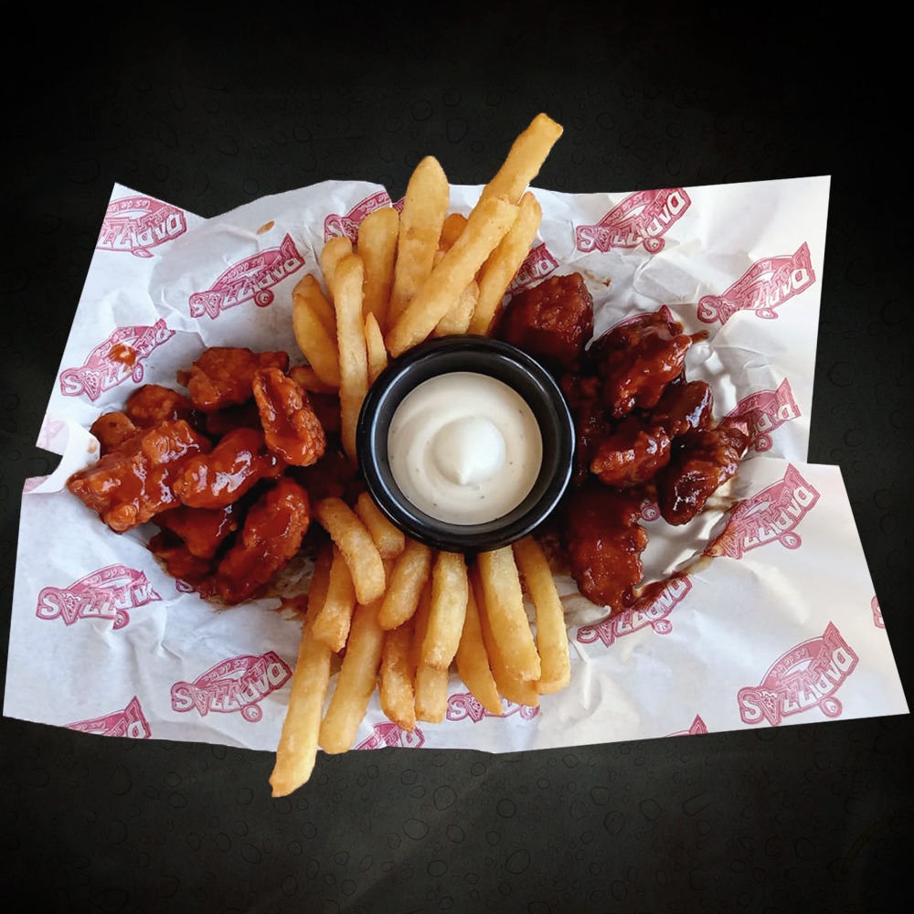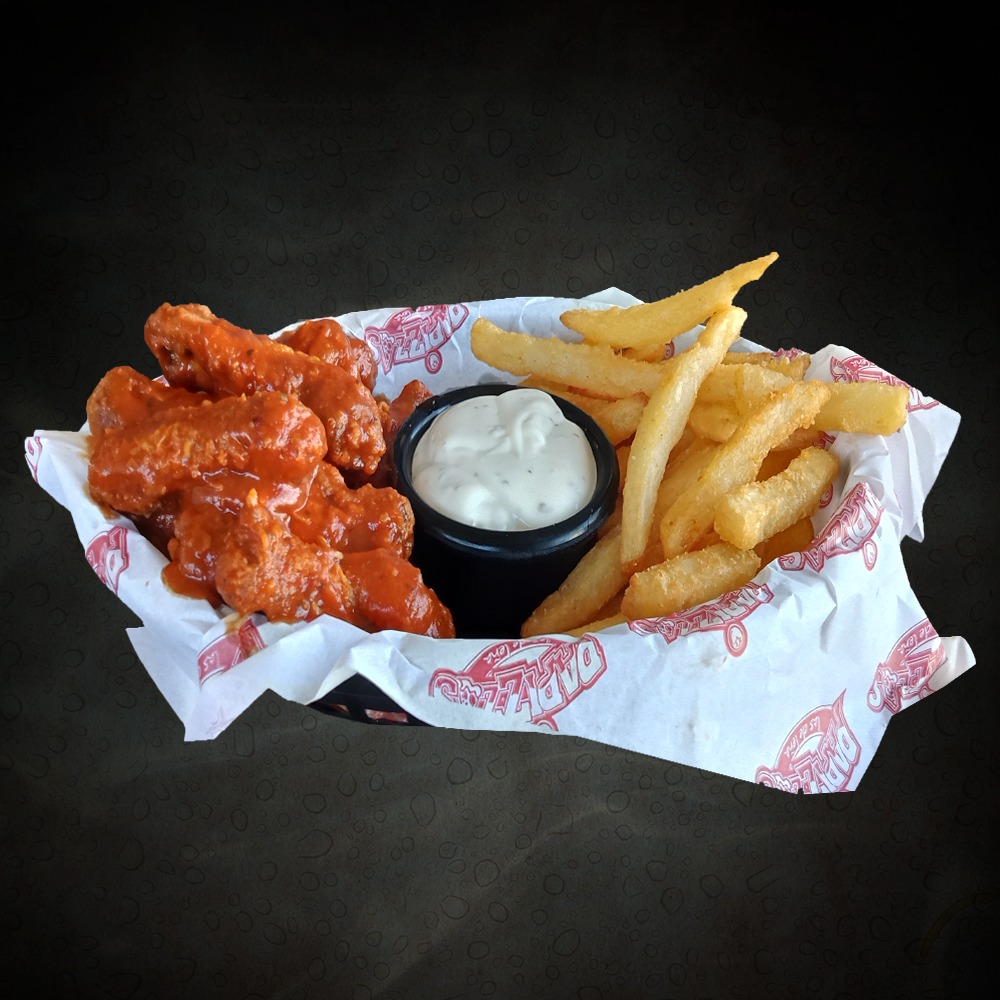 Deliciosas alitas crujientes, servidas con tu elección de salsa Buffalo, BBQ o combinalas a tu gusto.