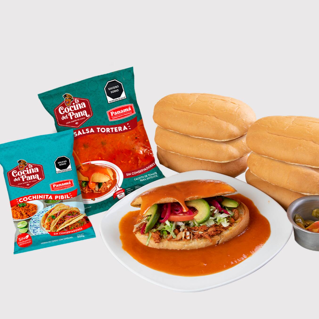6 pz teleras, 500 gr cochinita, 800 gr salsa tortera.