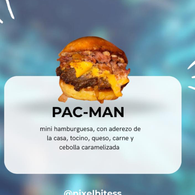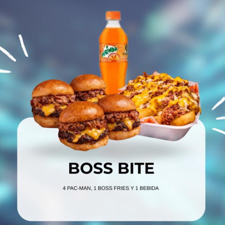 4 Pac- Man acompañadas de una orden de boss fries y 1 bebida.