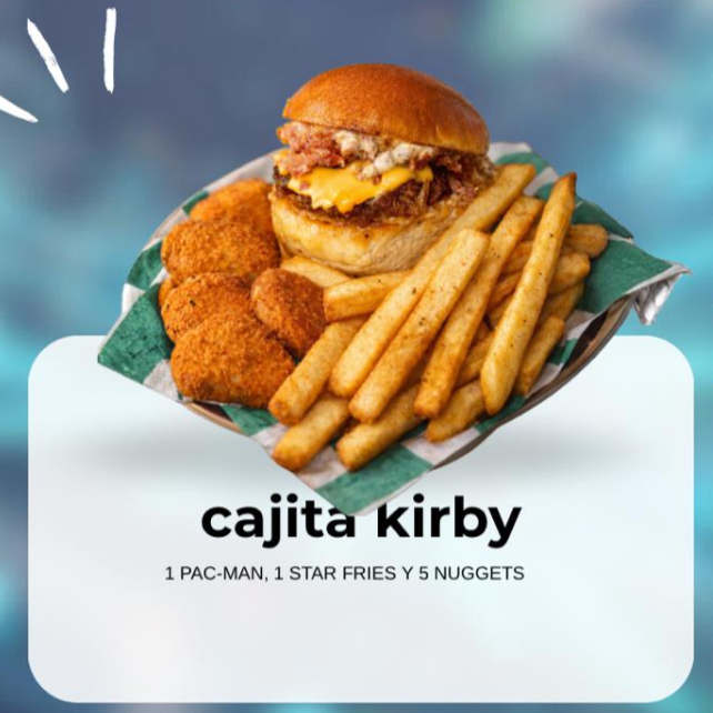 1 Pac-Man acompañada de papas a la francesa y 5 nuggets.