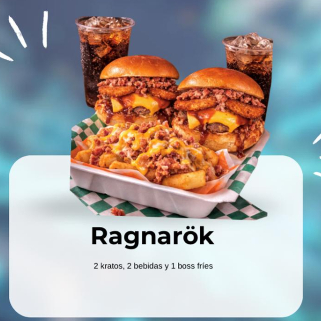 2 Kratos acompañadas de una orden de boss fries y 2 bebidas.