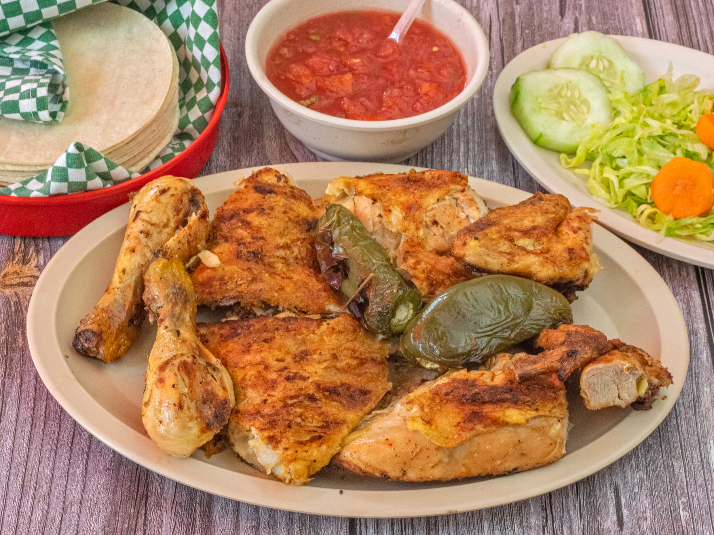 Acompañado de Salsa, Tortillas, Ensalada Verde y Chile Toreado