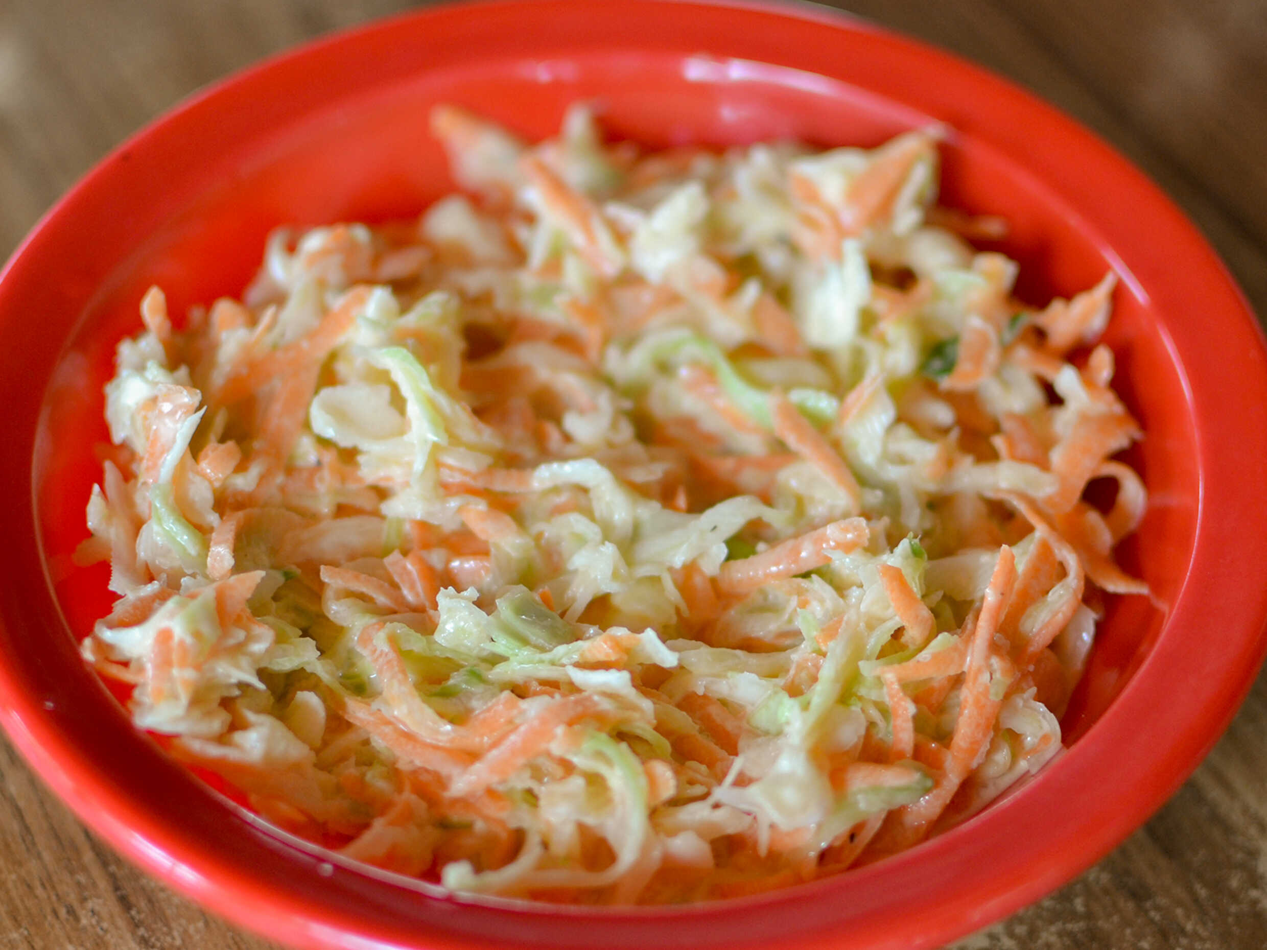 1/4 De litro de ensalada de repollo y zanahoria, muy cremosa.