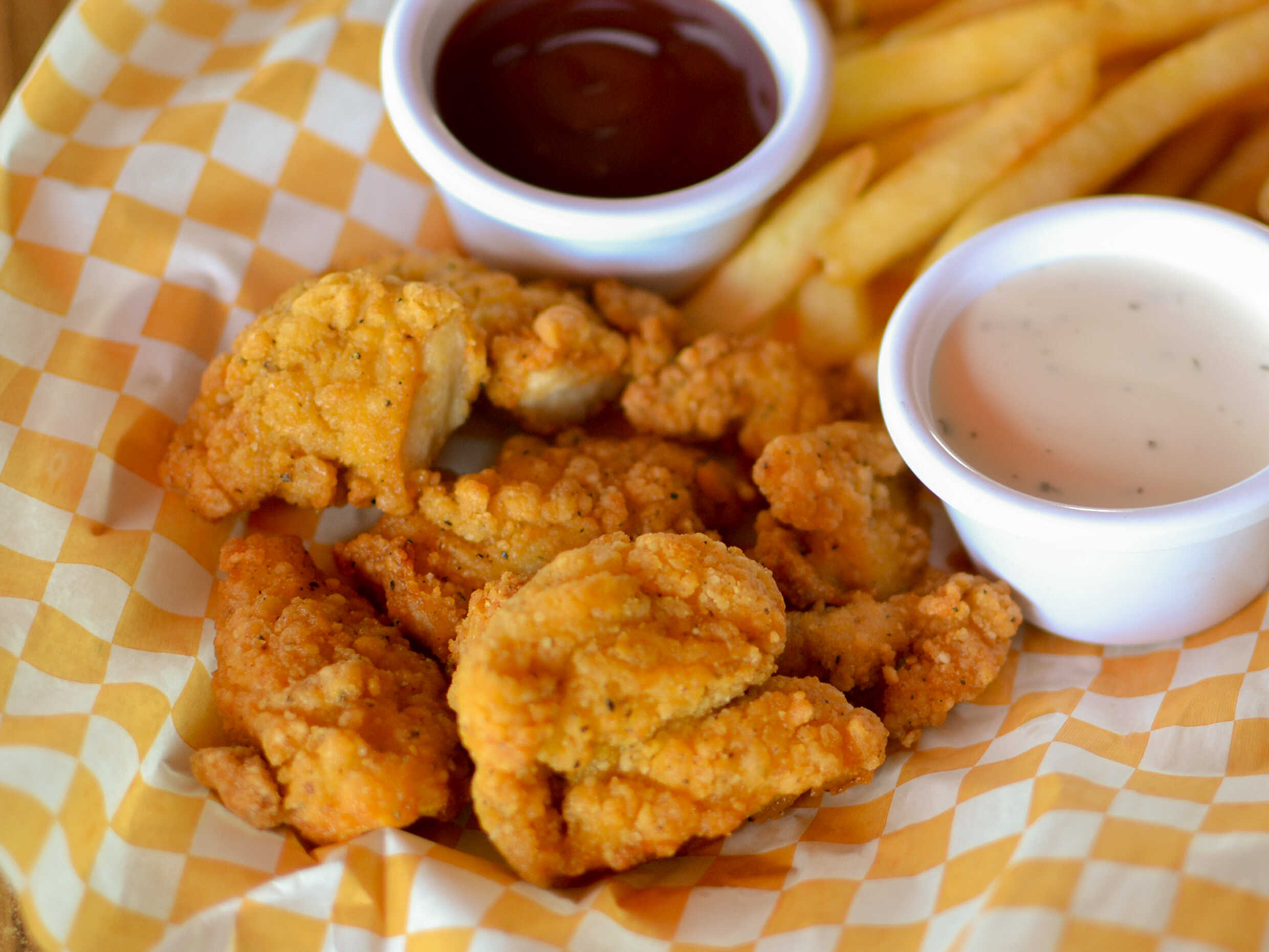 Deliciosos trocitos de pollo empanizado sin hueso.