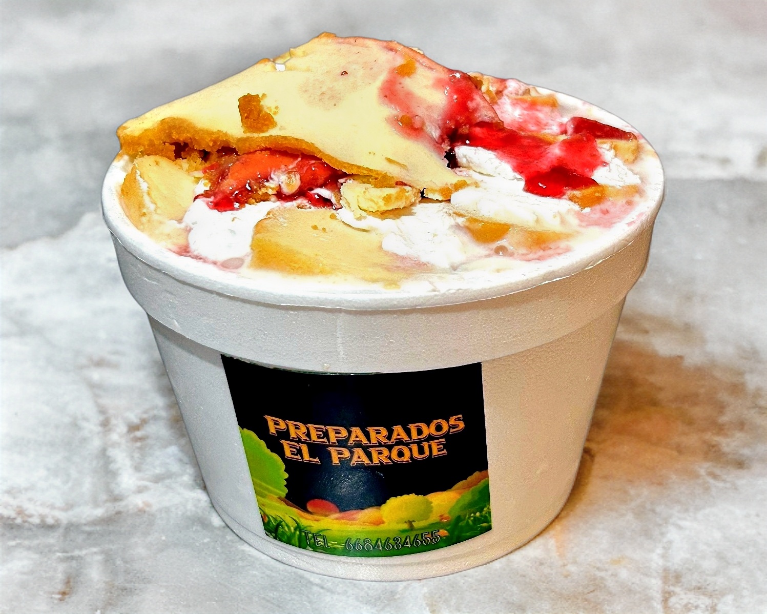Repollo, zanahoria,riel, cacahuates, cueritos,salchicha,pepino y crema.