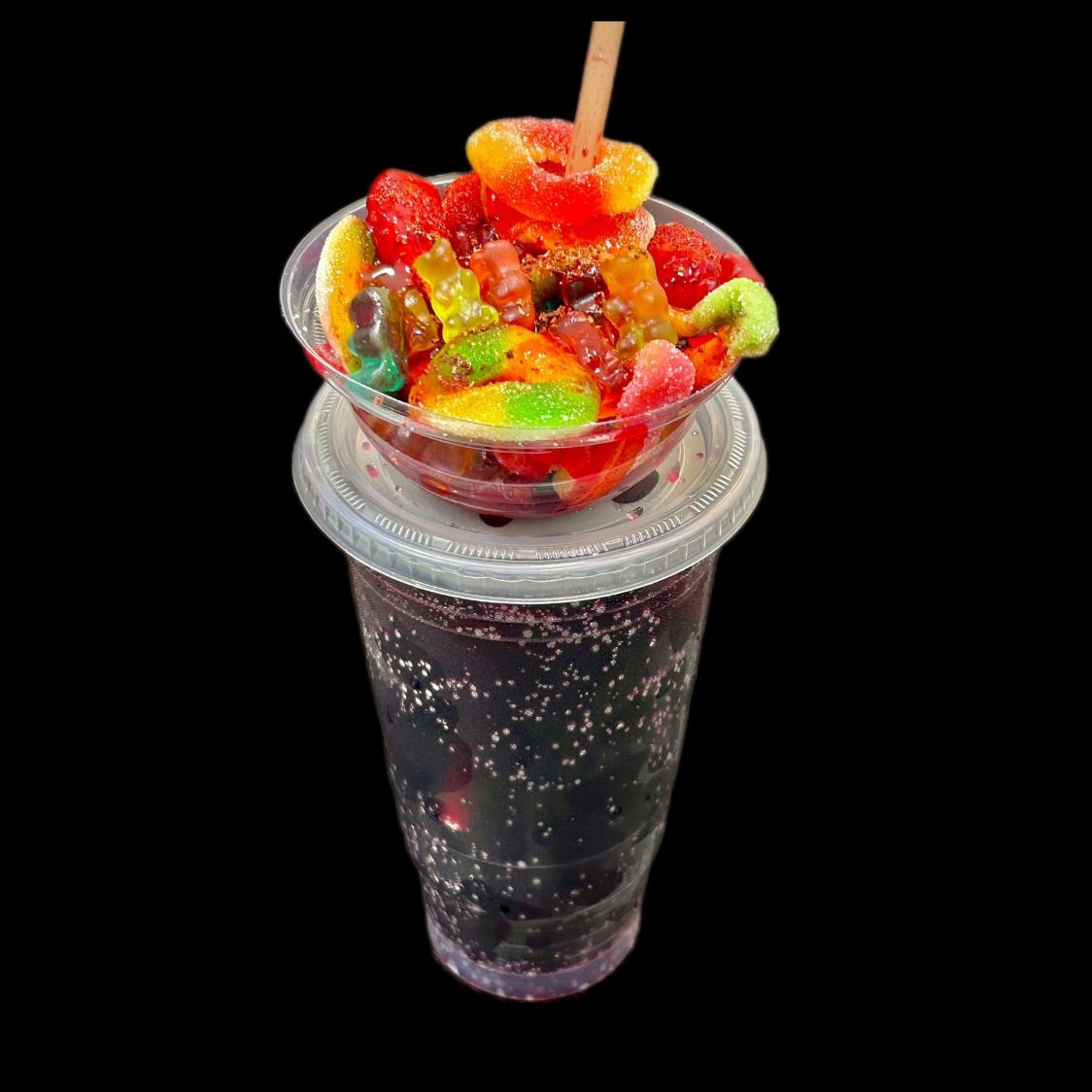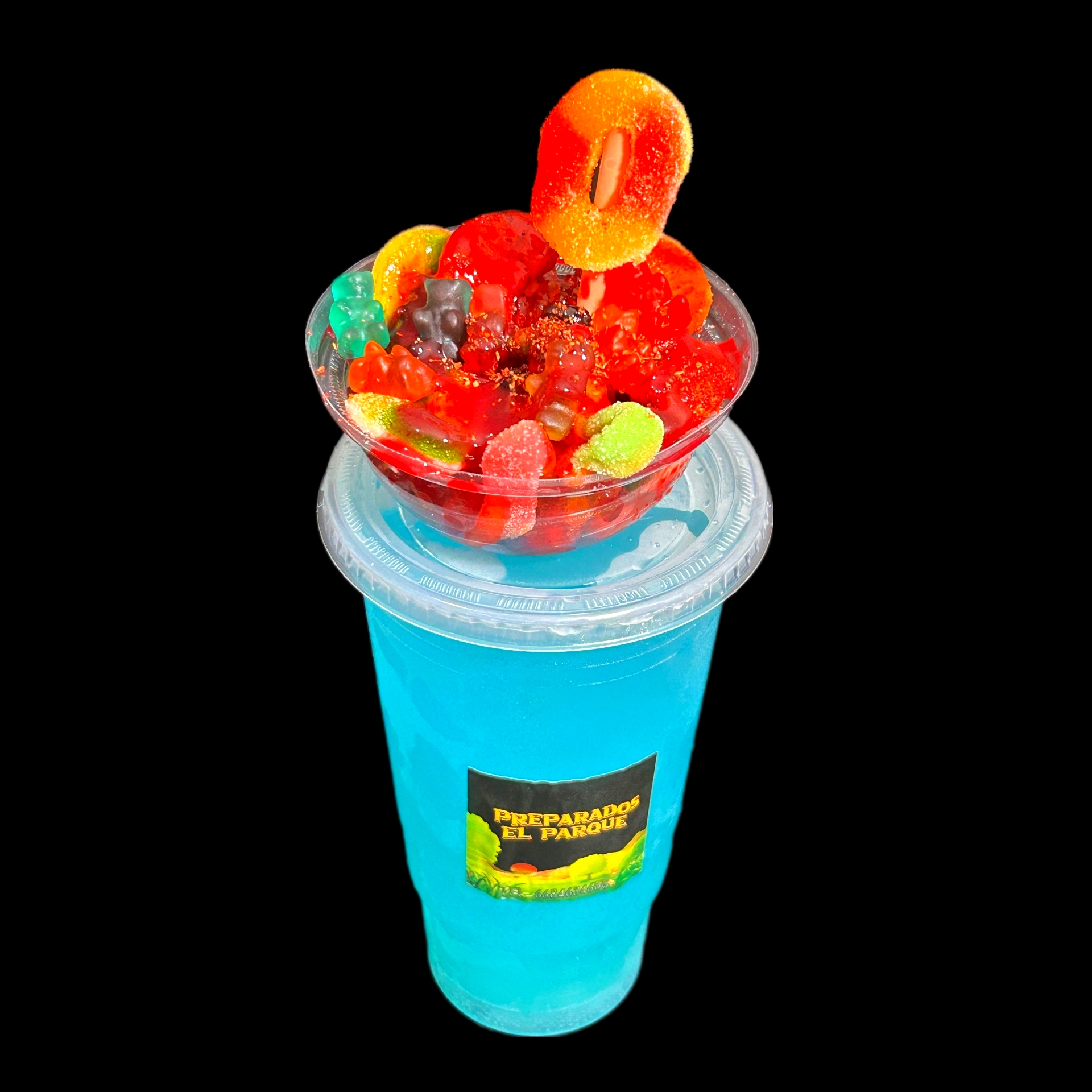 Azulita, Gomitas con chamoy de Ciruela y Miguelito en polvo