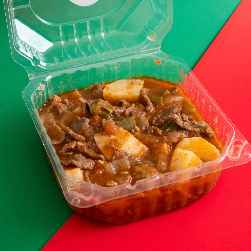 Tiras de bistec suave preparadas en salsa roja casera, bien sazonadas y con el sabor tradicional de la cocina mexicana. Un platillo reconfortante, ideal para una comida completa.