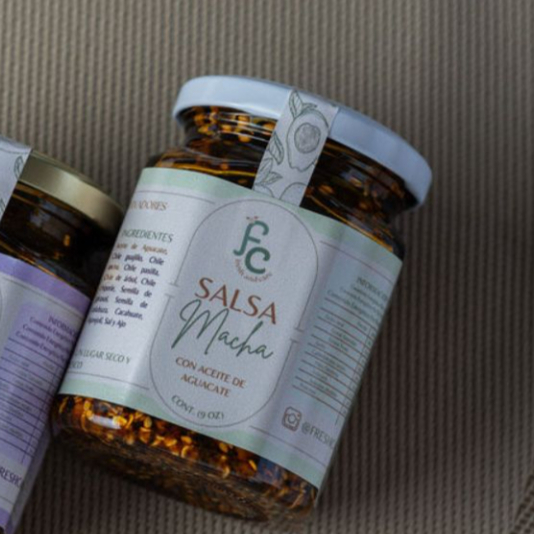 SALSA MACHA ELABORADA CON ACEITE DE AGUACATE EXTRA VIRGEN PRENSADO EN FRIO, MEZCLA DE SEMILLAS Y CHILES.