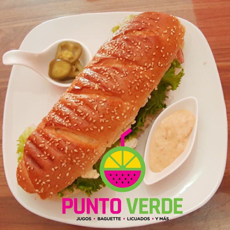 Incluye un baguette de pollo y un jugo verde de litro