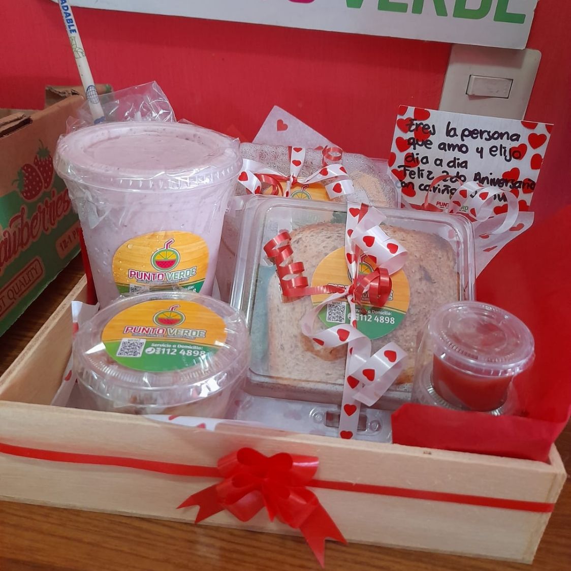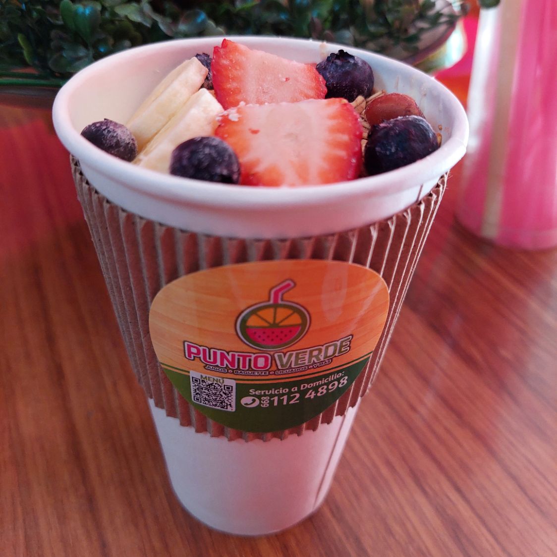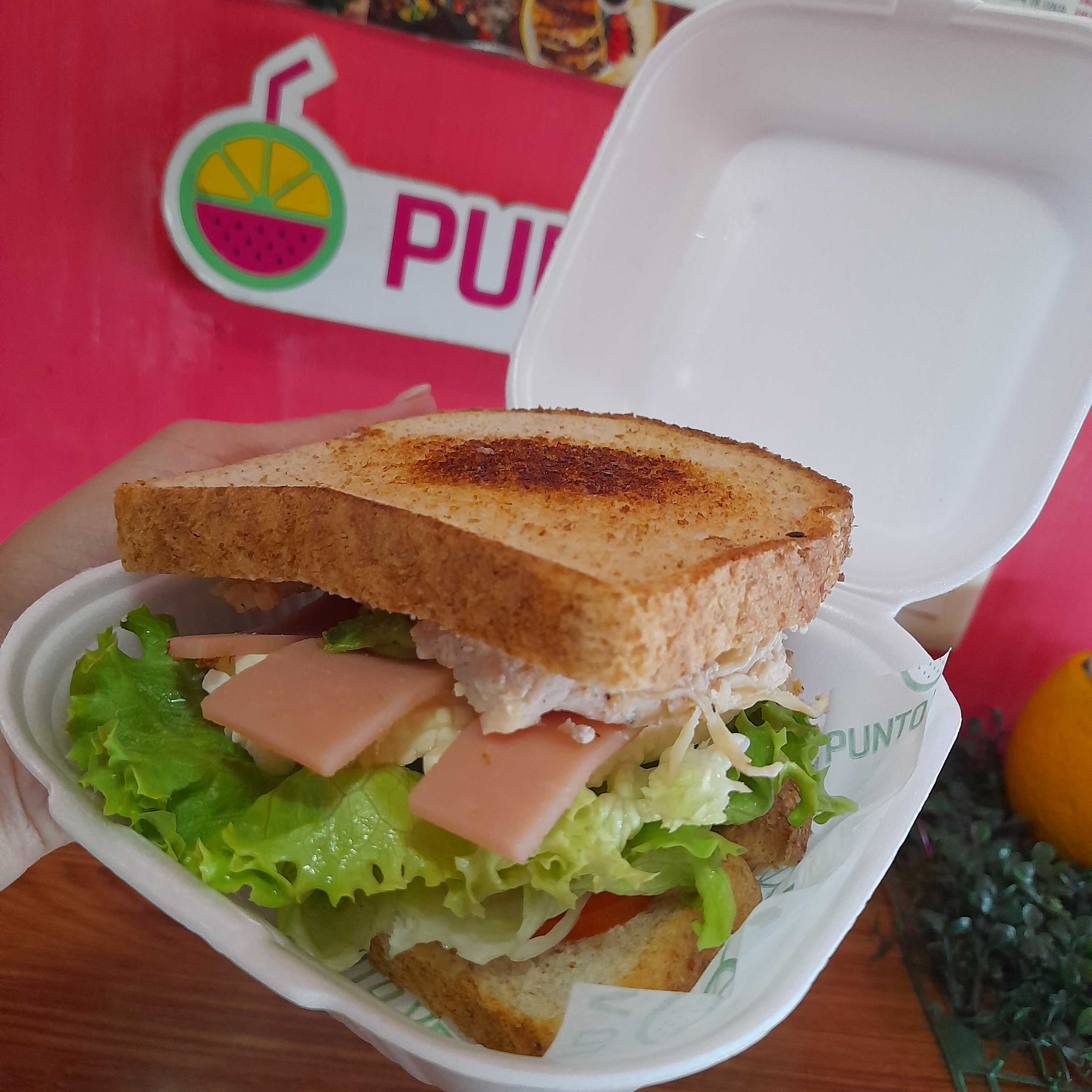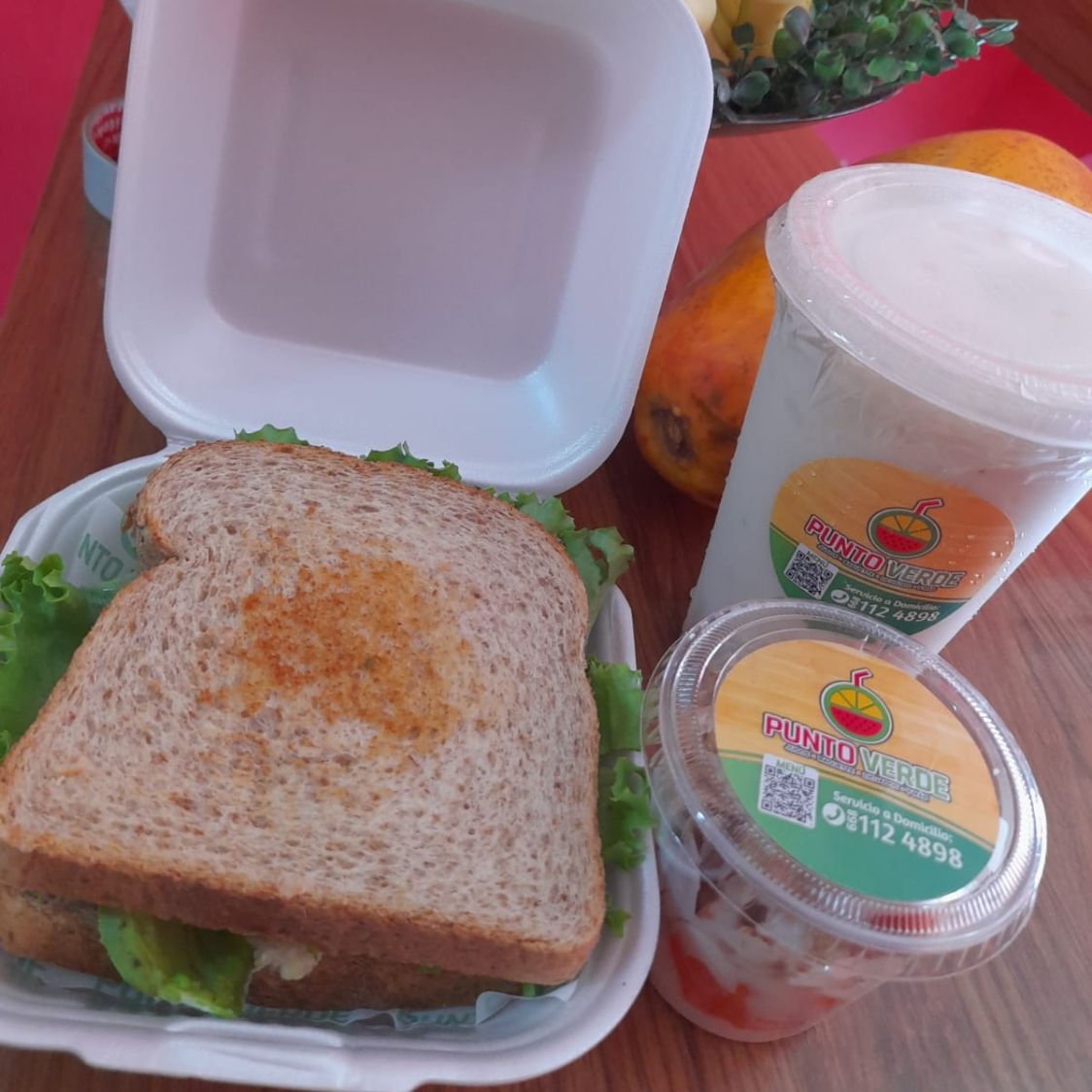 Incluye sandwich de pollo, licuado de platano y vasito de fruta con yogurt y granola