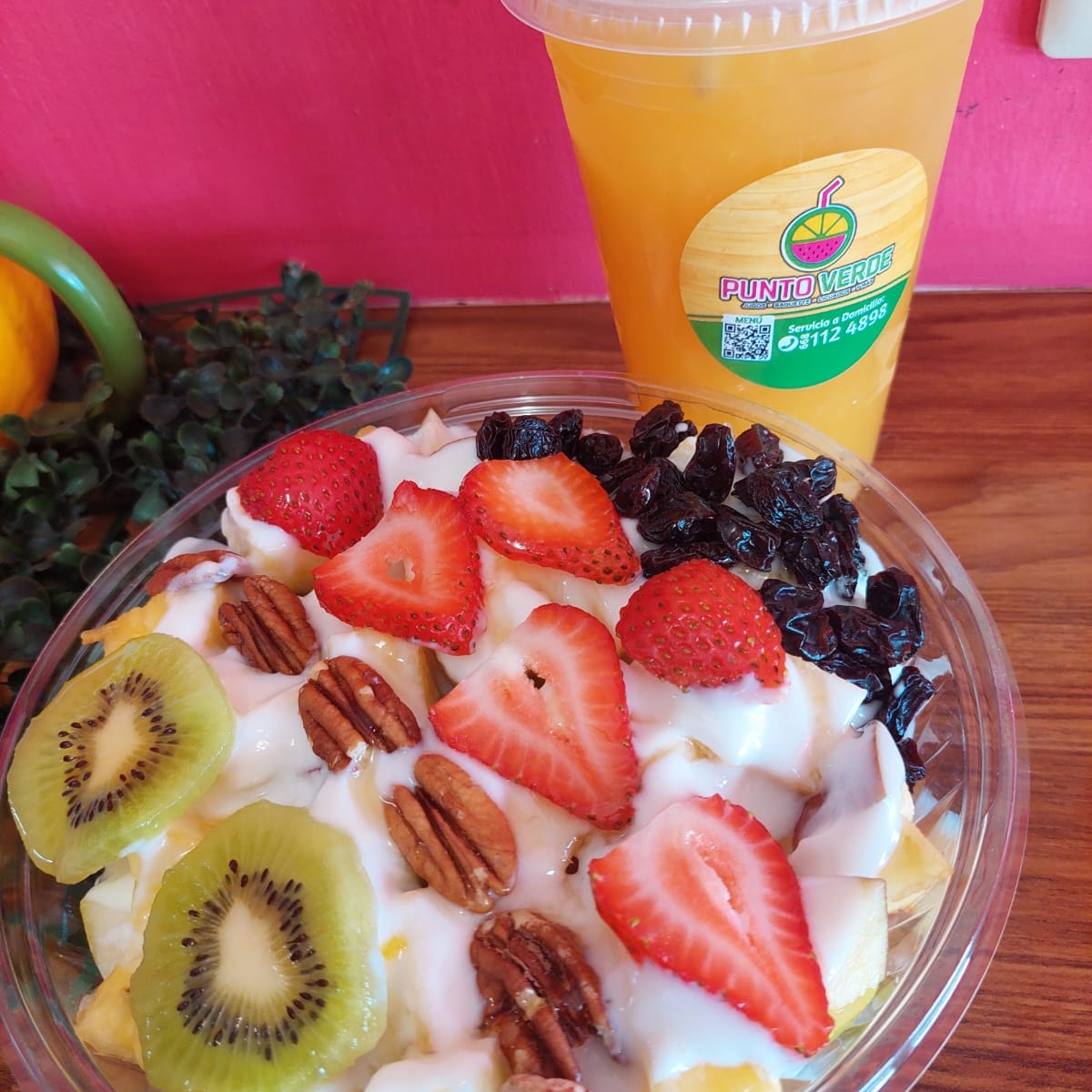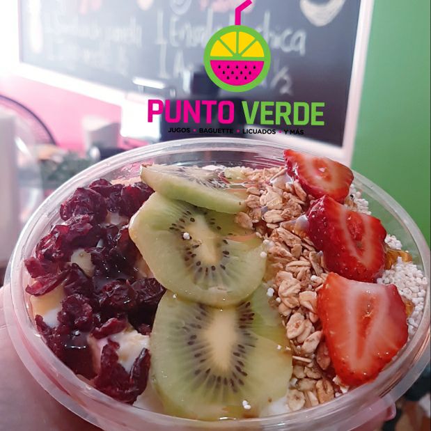 Incluye un bowl de frutas con yogurt y 2 toppings y un jugo de naranja de 1/2 lt