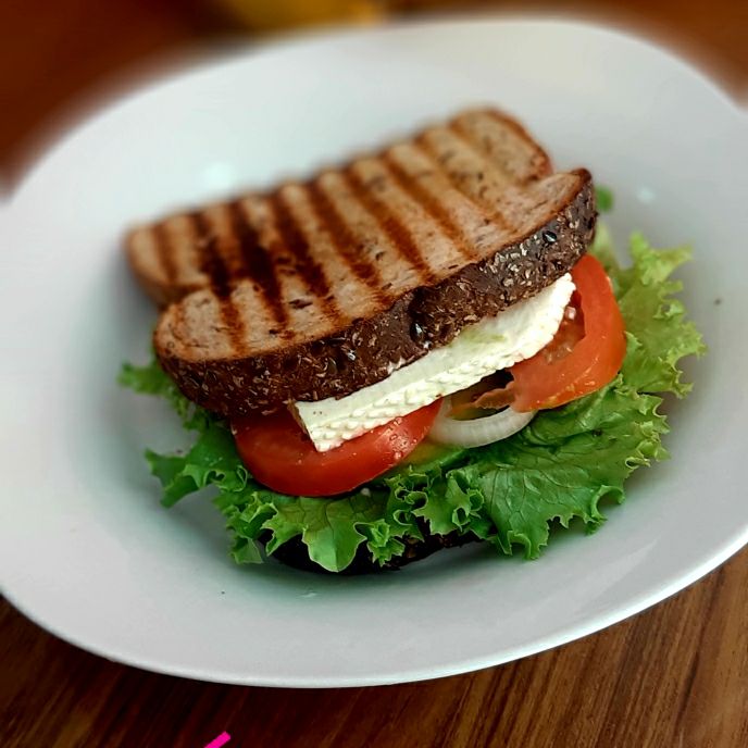 PAN DOBLE CERO, CEBOLLA, TOMATE, AGUACATE, LECHUGA, QUESO MACHEGO, HUEVO EN TORTA