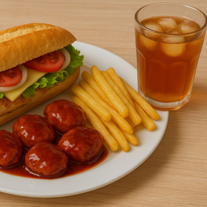 SANDWICH DE POLLO + PAPAS FRANCESAS + TE GRATIS