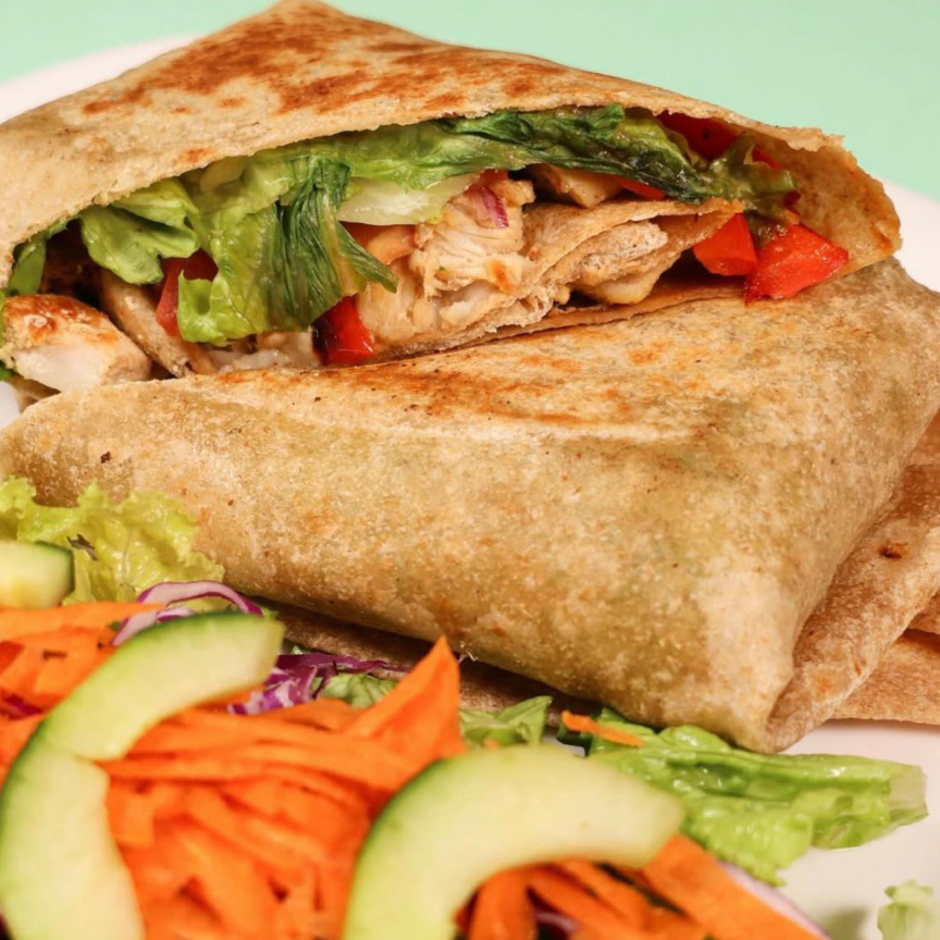 WRAP DE POLLO ACOMPAÑADO DE ENSALADA Y ADERZO