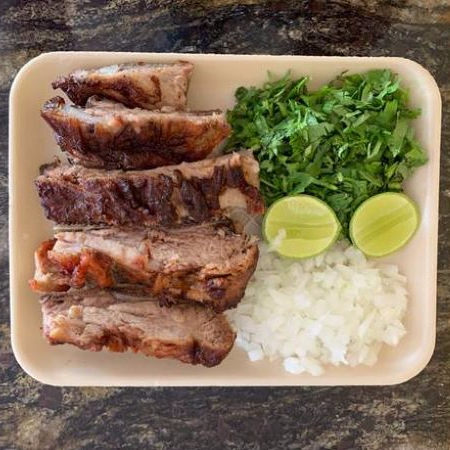 500 Gramos de maciza de cerdo, acompañada de tortillas, salsa de la casa, cebolla, cilantro y limones.