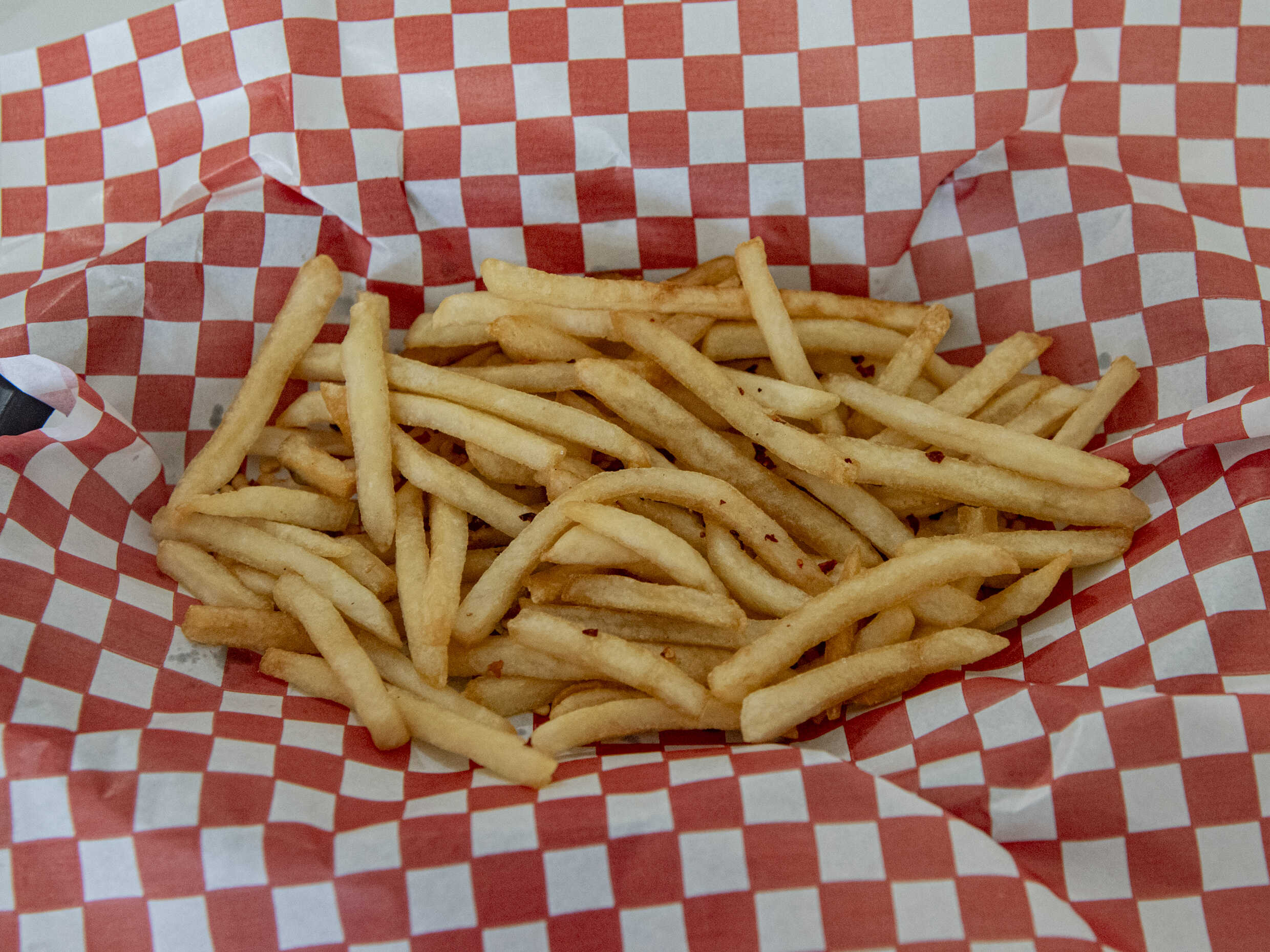 Deliciosas papas a la francesa (150g) con un toque de pimiento triturado, sal y catsup.