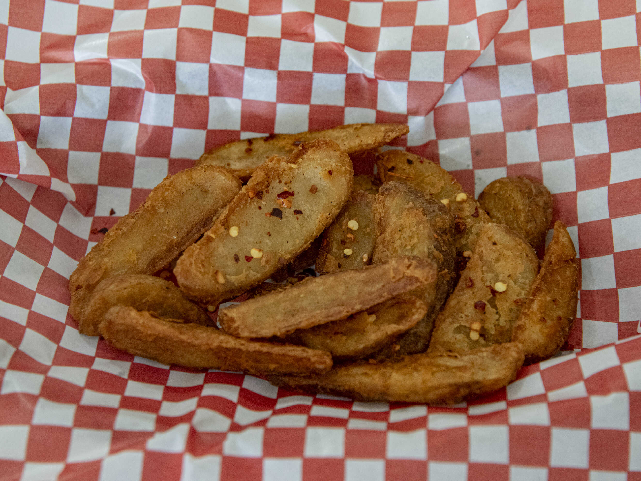 Deliciosas papas gajo (300g) con un toque de pimiento triturado, sal y aderezo ranch.