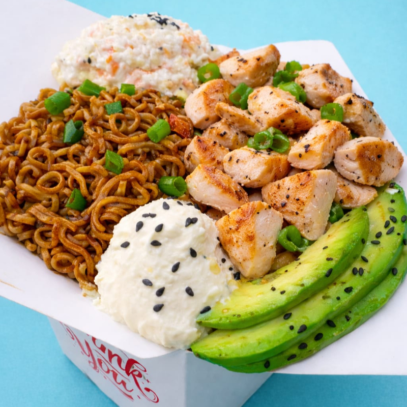Deliciosa pasta ramen sazonada al estilo Arroshito, preparada con pollo salteado, acompañada de nuestra ensalada de surimi, queso crema, aderezo chipotle y rebanadas de aguacate fresco. ¡La mezcla perfecta de sabor!