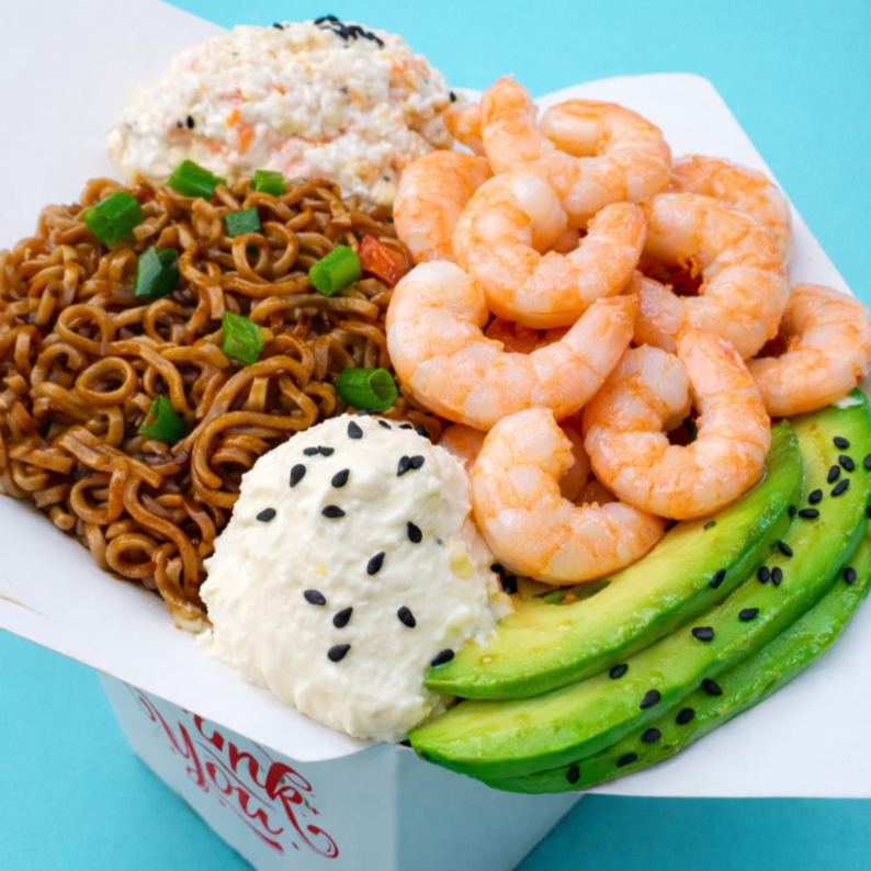 Deliciosa pasta ramen sazonada al estilo Arroshito, preparada con camarón salteado. Acompañada de nuestra ensalada de surimi, queso crema, aderezo chipotle y rebanadas de aguacate fresco. La mezcla perfecta de sabor!