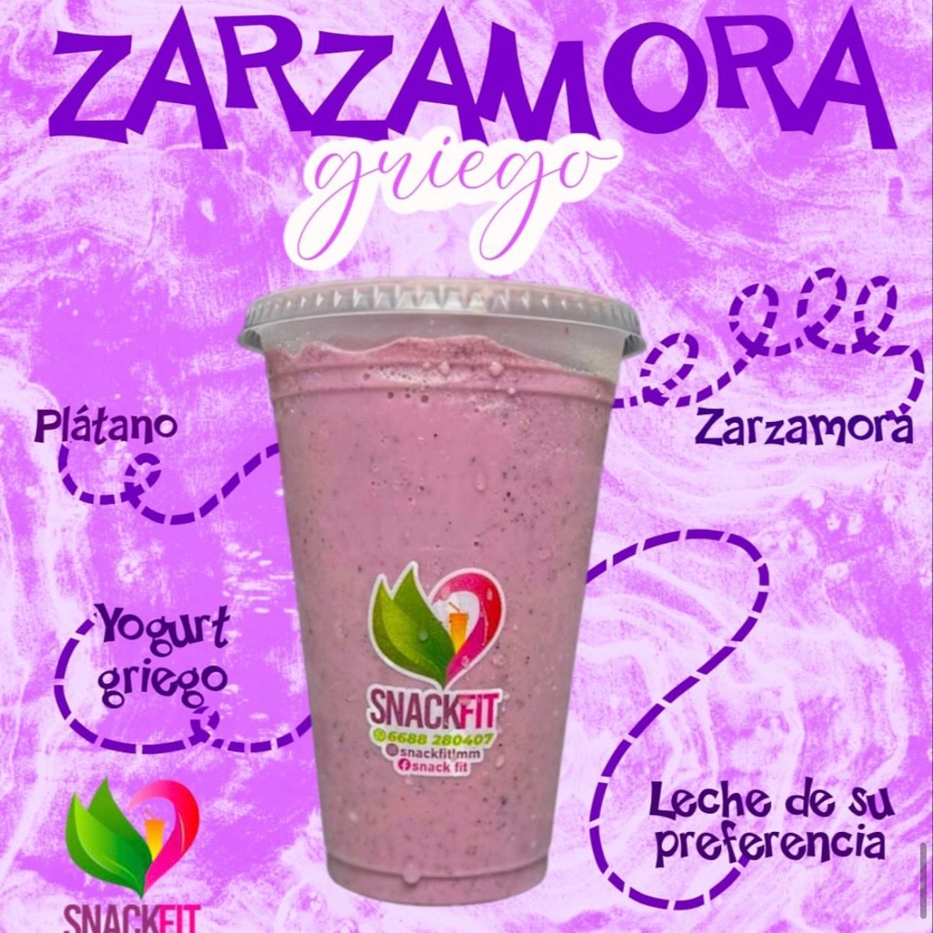 Smoothie hecho con base, leche a elegir y yogurt griego.
