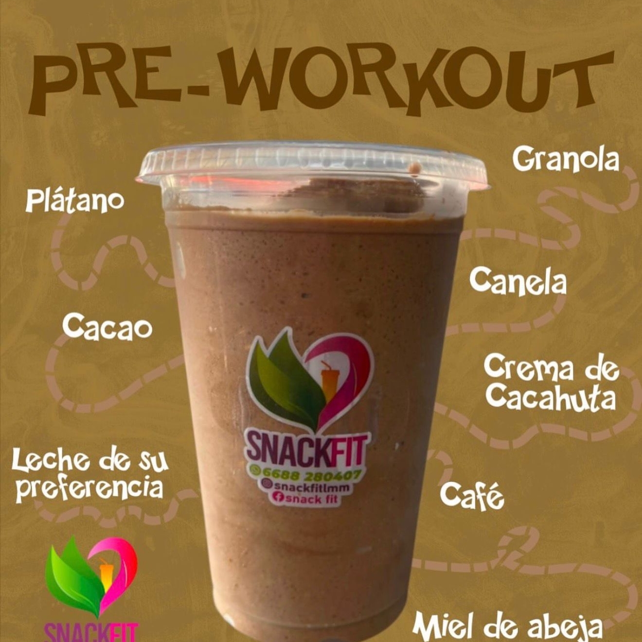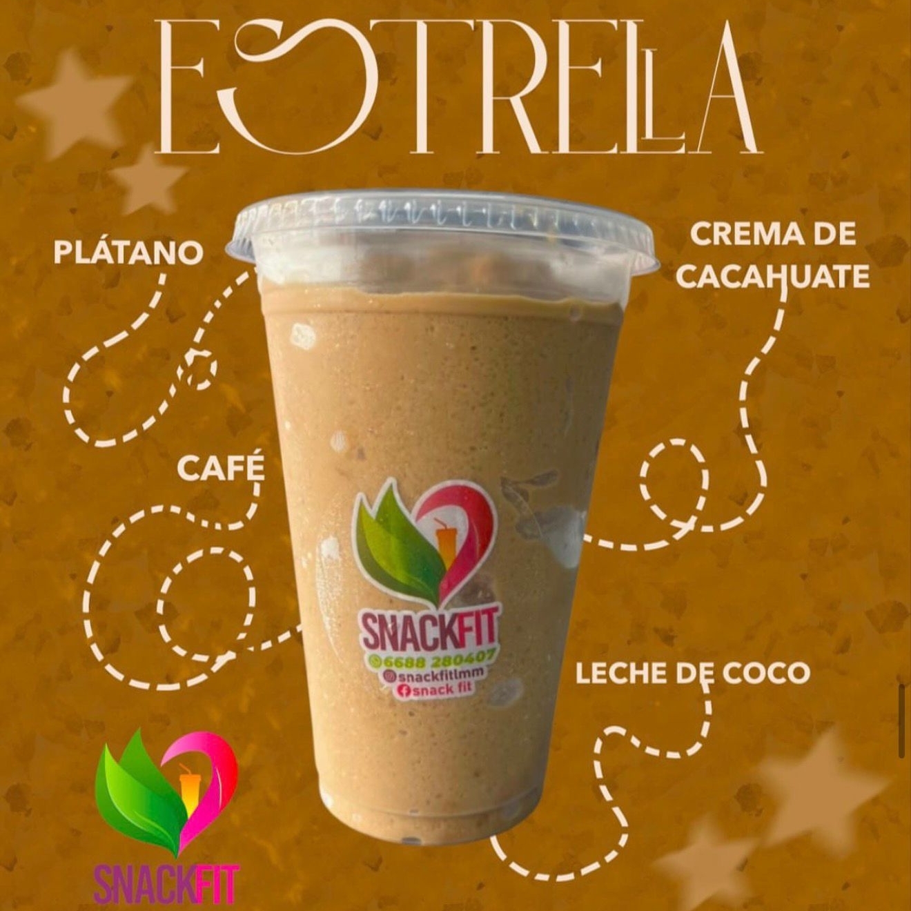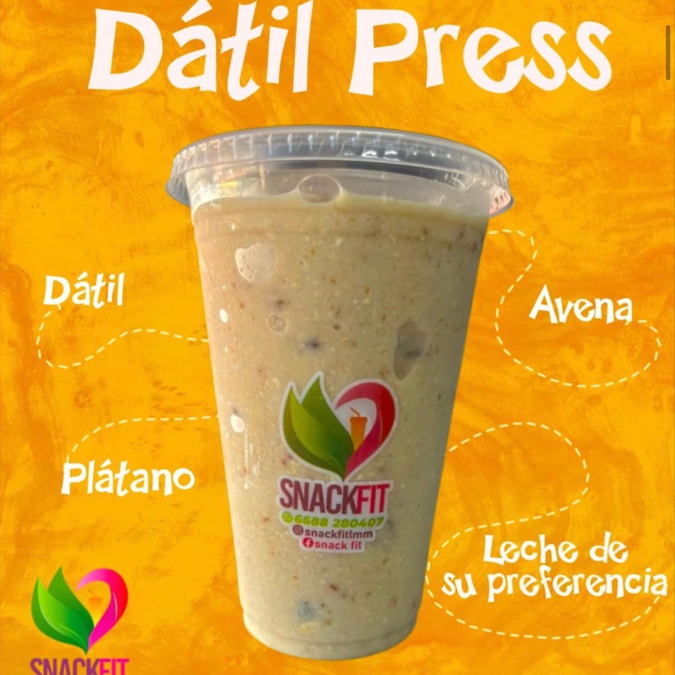 Smoothie hecho con dátil, plátano, avena y leche a elegir.