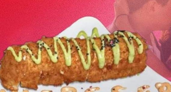 Camarón forrado con philadelphia empanizado bañado de salsa de anguila y ajonjolí.