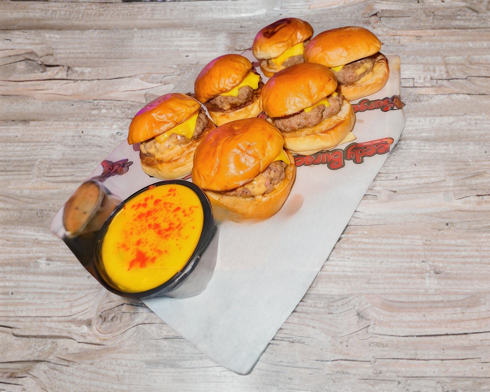 ORDEN DE 6 MINI BURGUERS DE RIB EYE ACOMPAÑADO DE DIP DE QUESO CON TOCINO