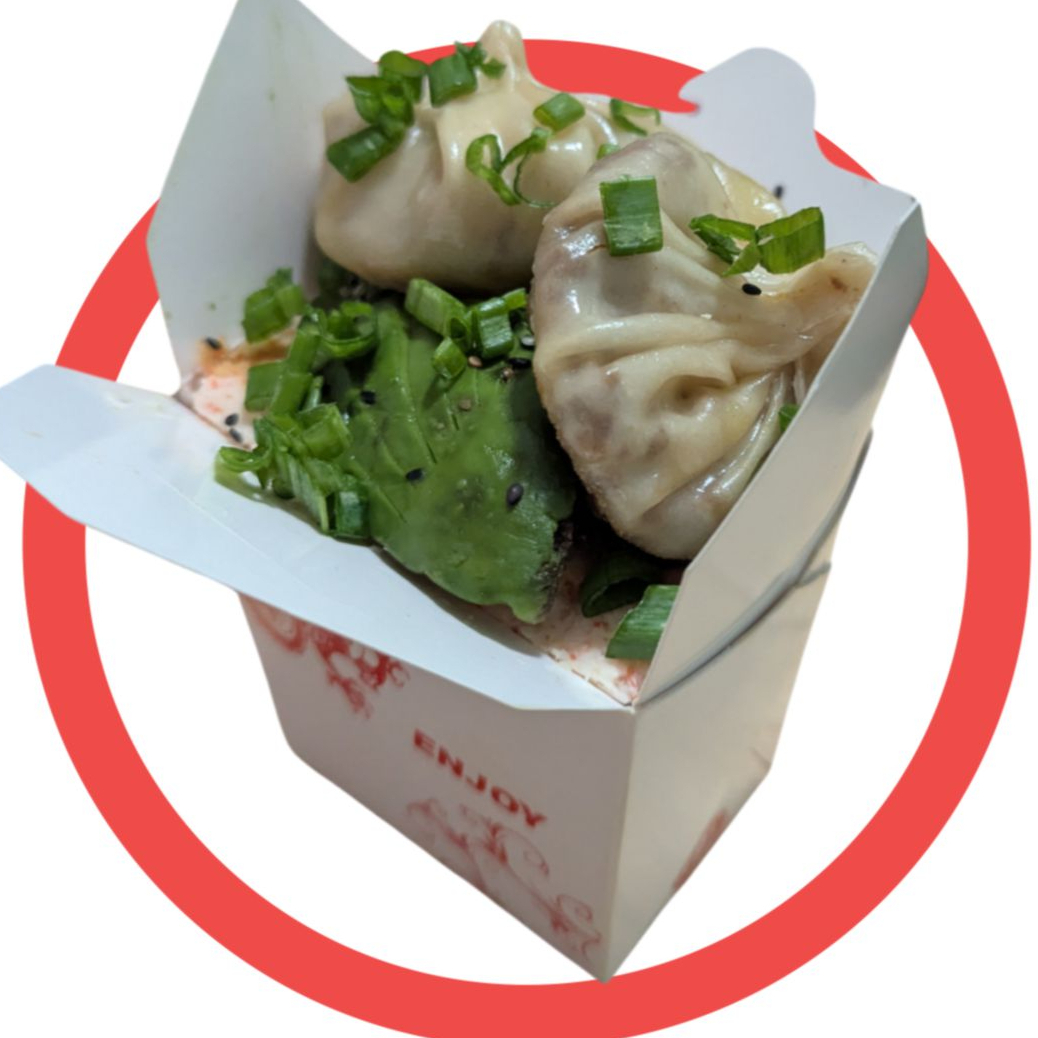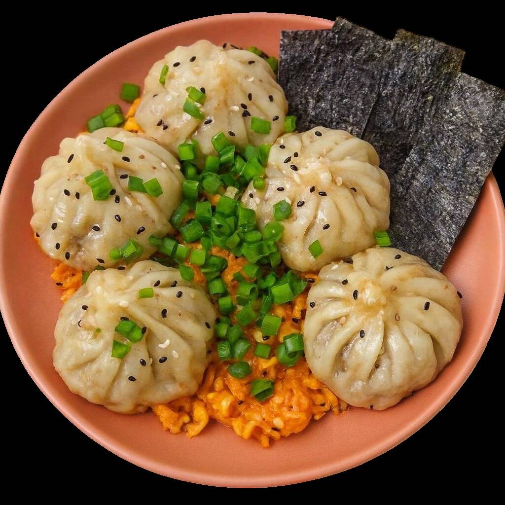 Un Ramen picante, preparado con ajonjoli, alga y 5 dumplings rellenos a su elección.
