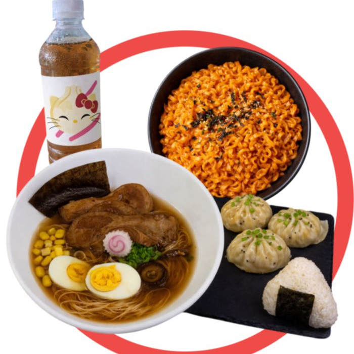 Orden de 3 Dumplings*1 + Buldak Preparado*1 + Ramen Pork Power*1 + Onigiri*1 + 1 bebida embotellada*1