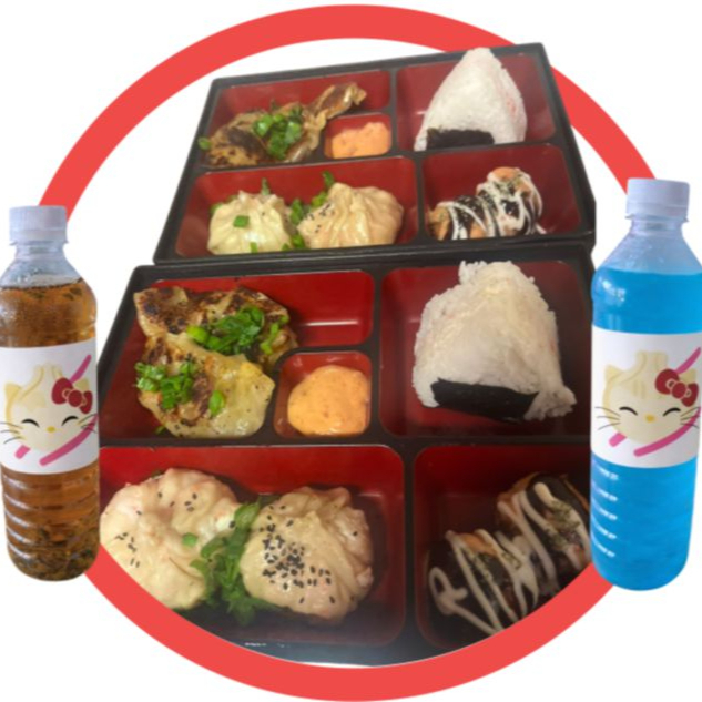 Orden de 4 dumplings*1 + Orden de 4 takoyakis*1 + Orden de 4 gyoza*1 + 1 bebida embotellada*2 + Onigiri*2