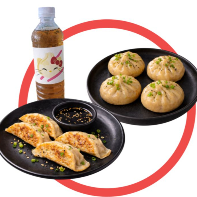 Orden de 4 gyoza*1 + Orden de 4 dumplings*1 + 1 bebida embotellada*1