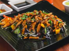 Primero se marinan en una mezcla secreta, después se enharinan ligeramente, se fríen y se termina bañando en una increíble salsa agridulce, de gran sabor pero nada picante. Van servidas sobre arroz blanco.
