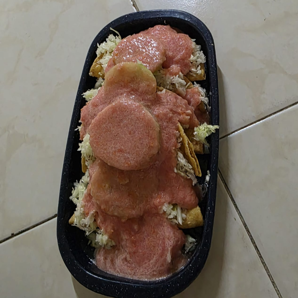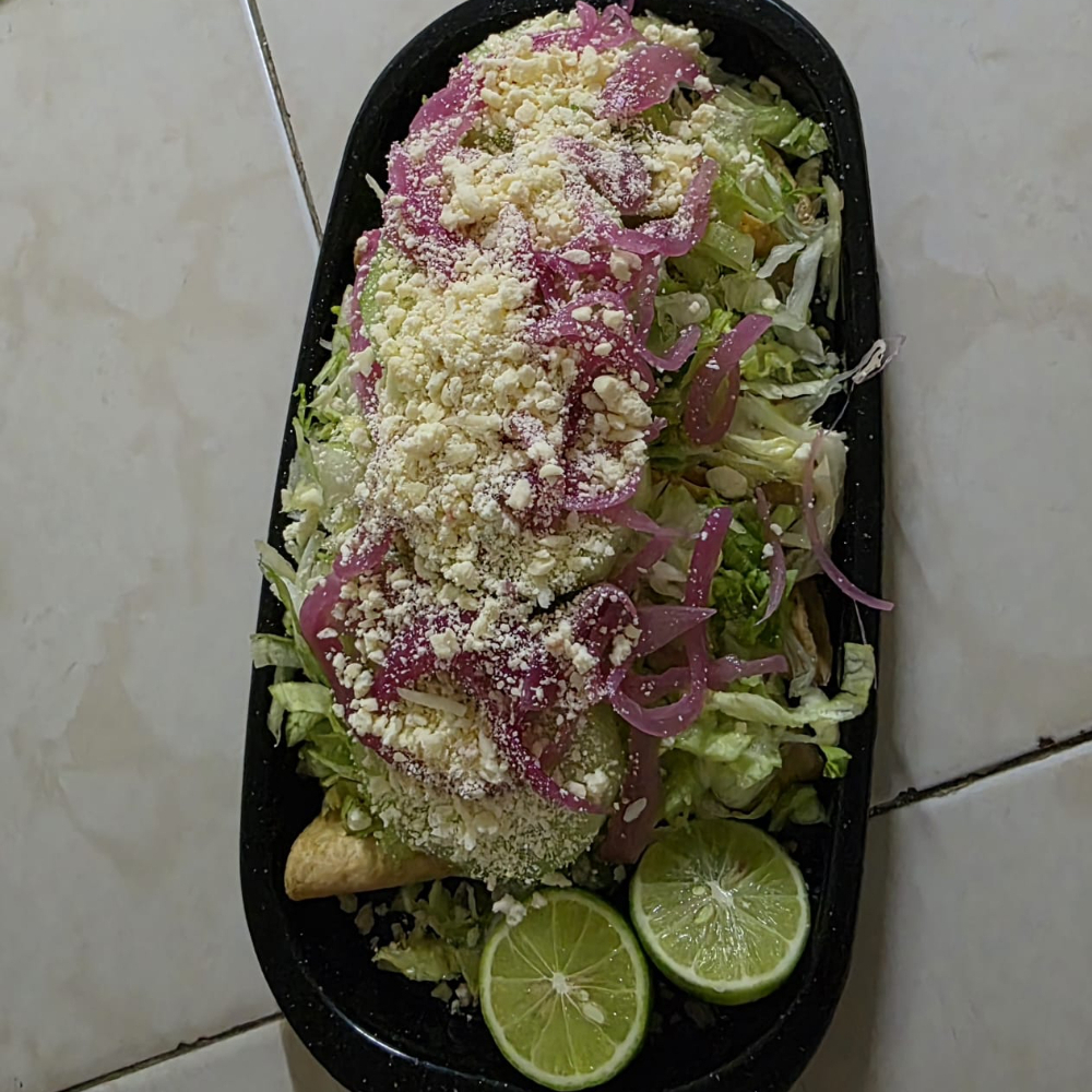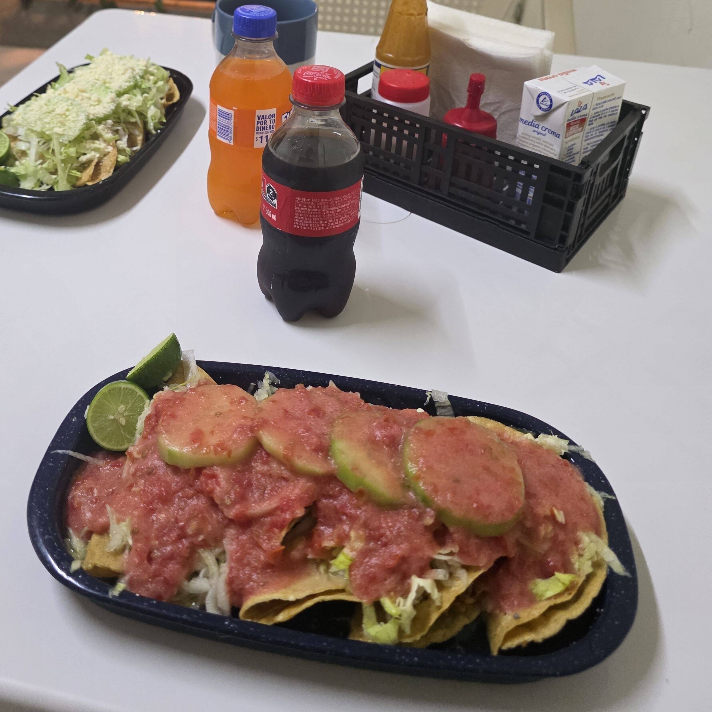 Lechuga, Cebolla curtida, Pepino, Media Crema, Queso rallado, Limones y Caldo Caliente