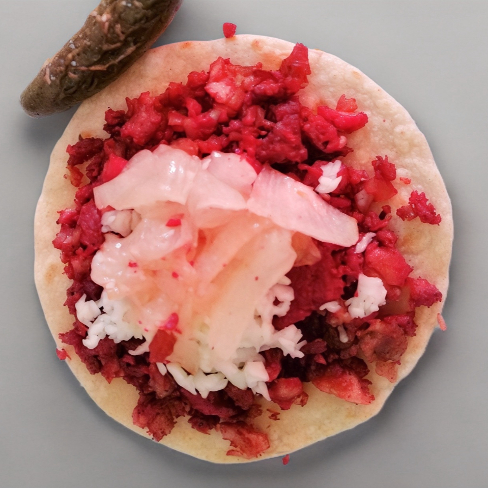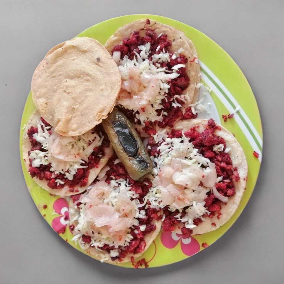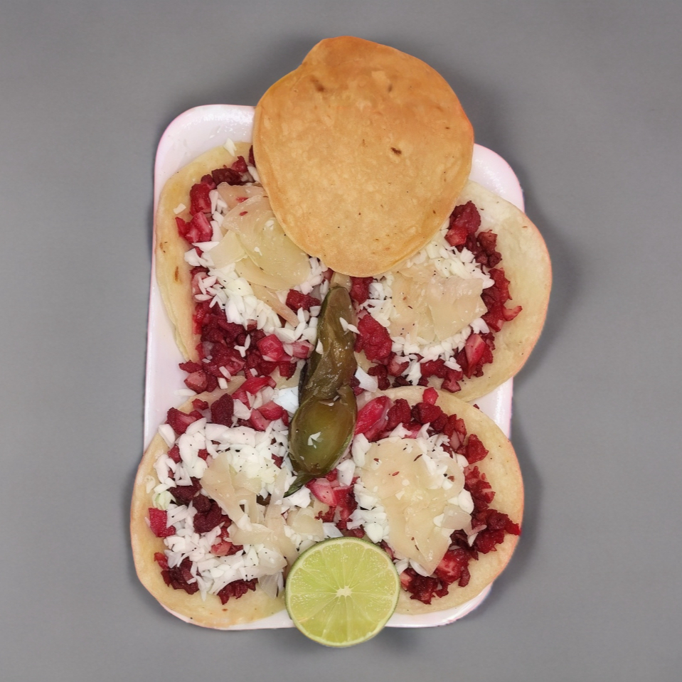 4 tacos de adobada de maiz