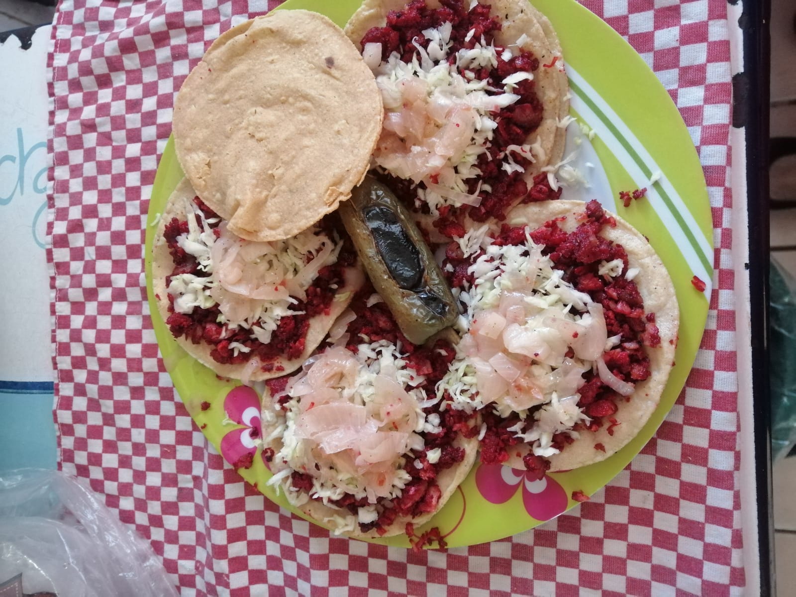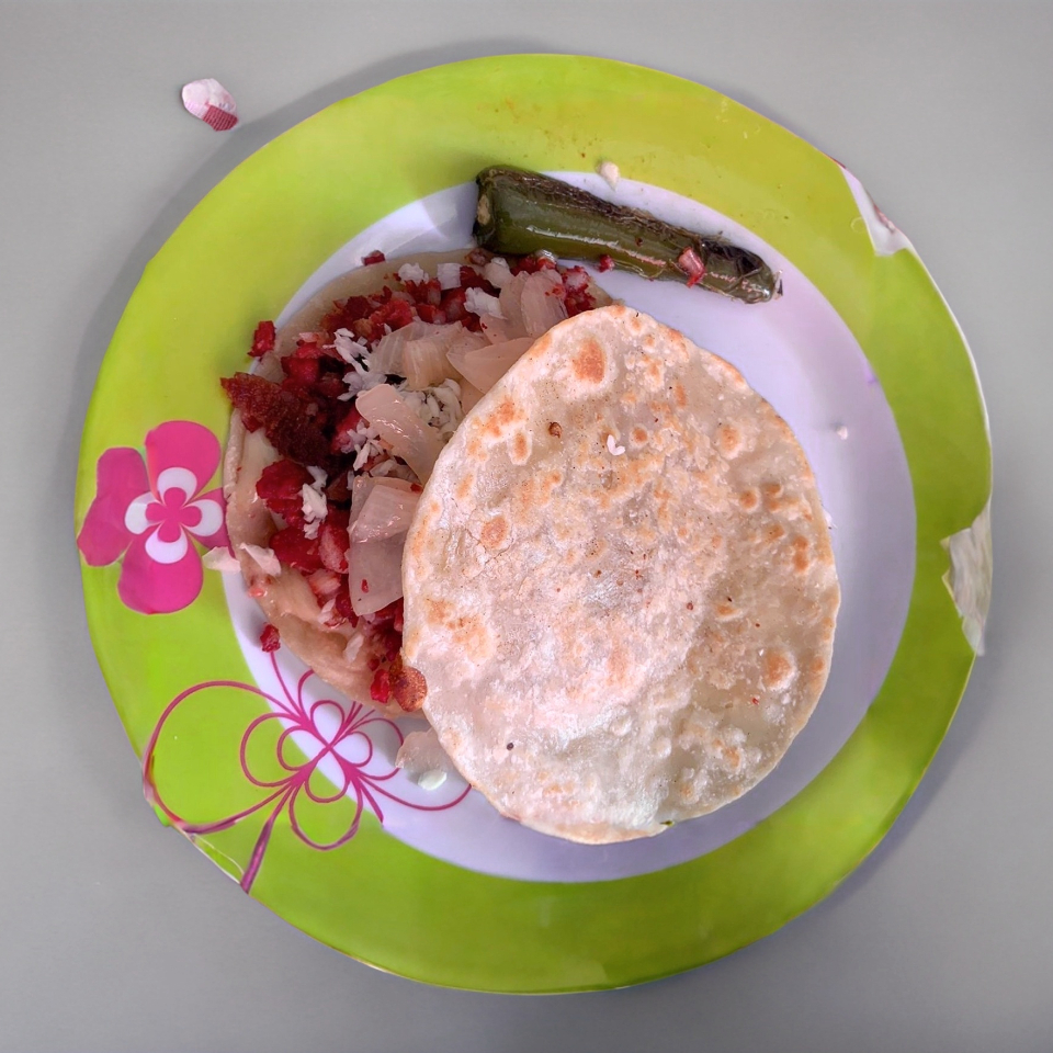 3 tacos de adobada de harina