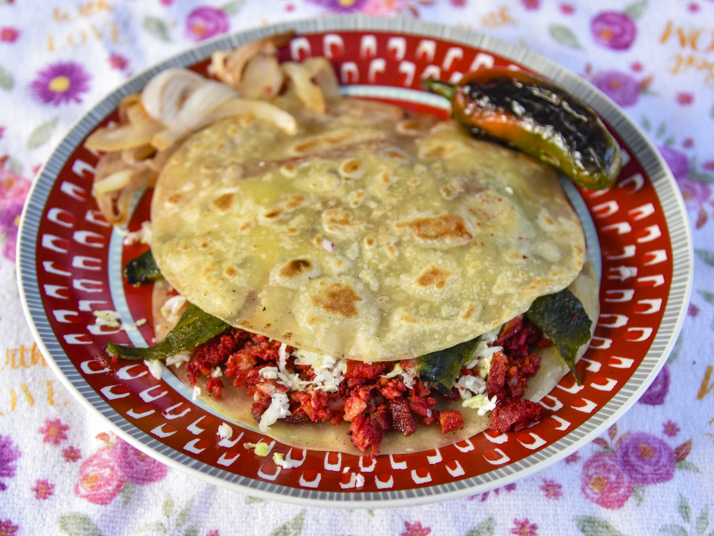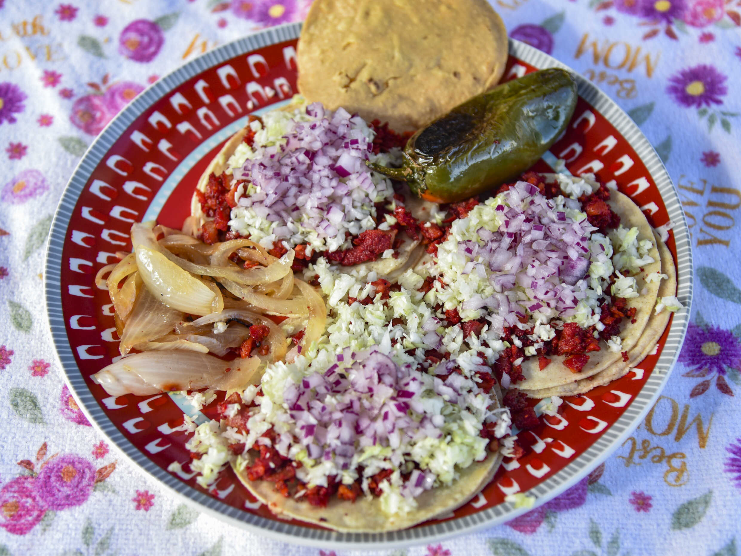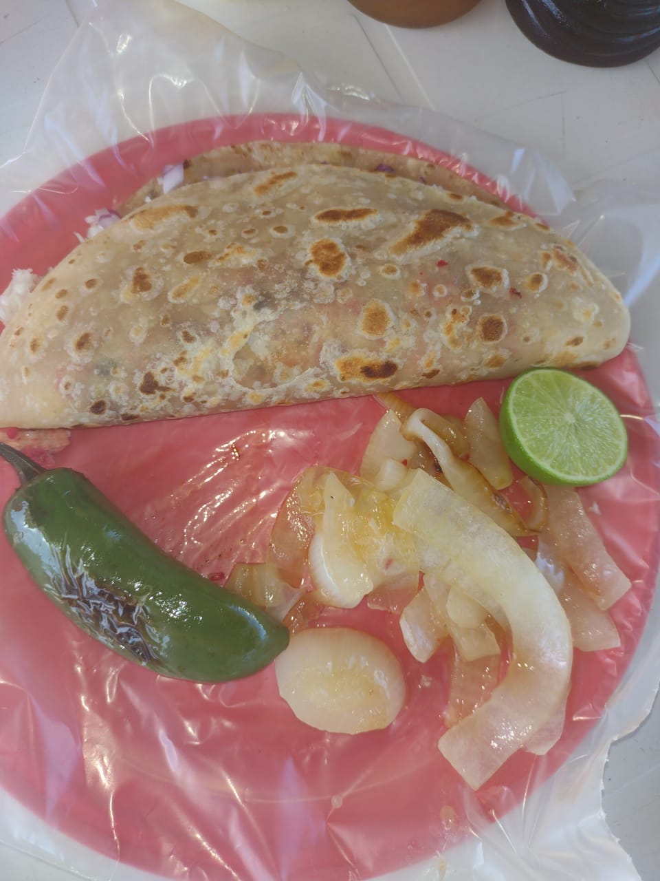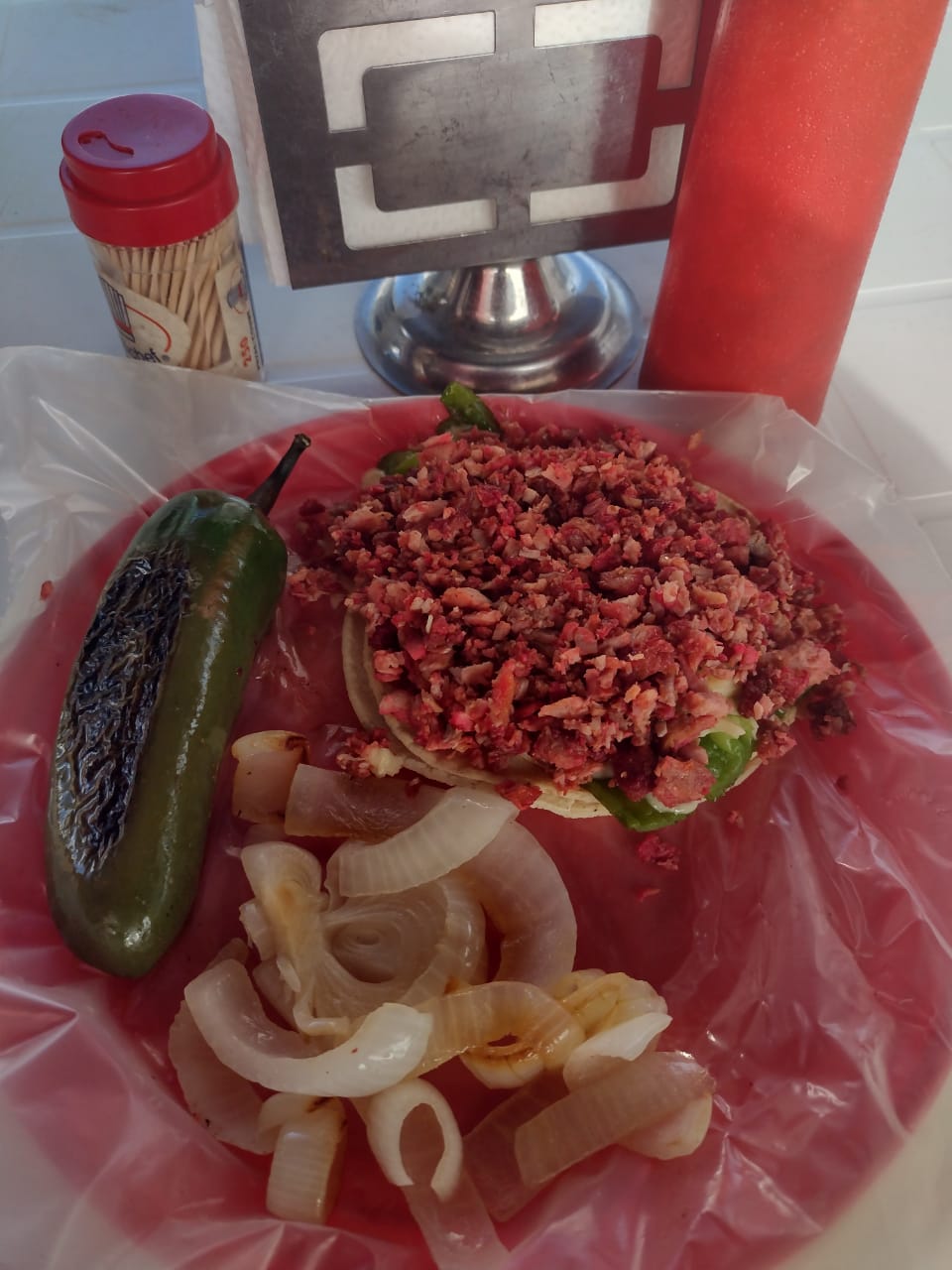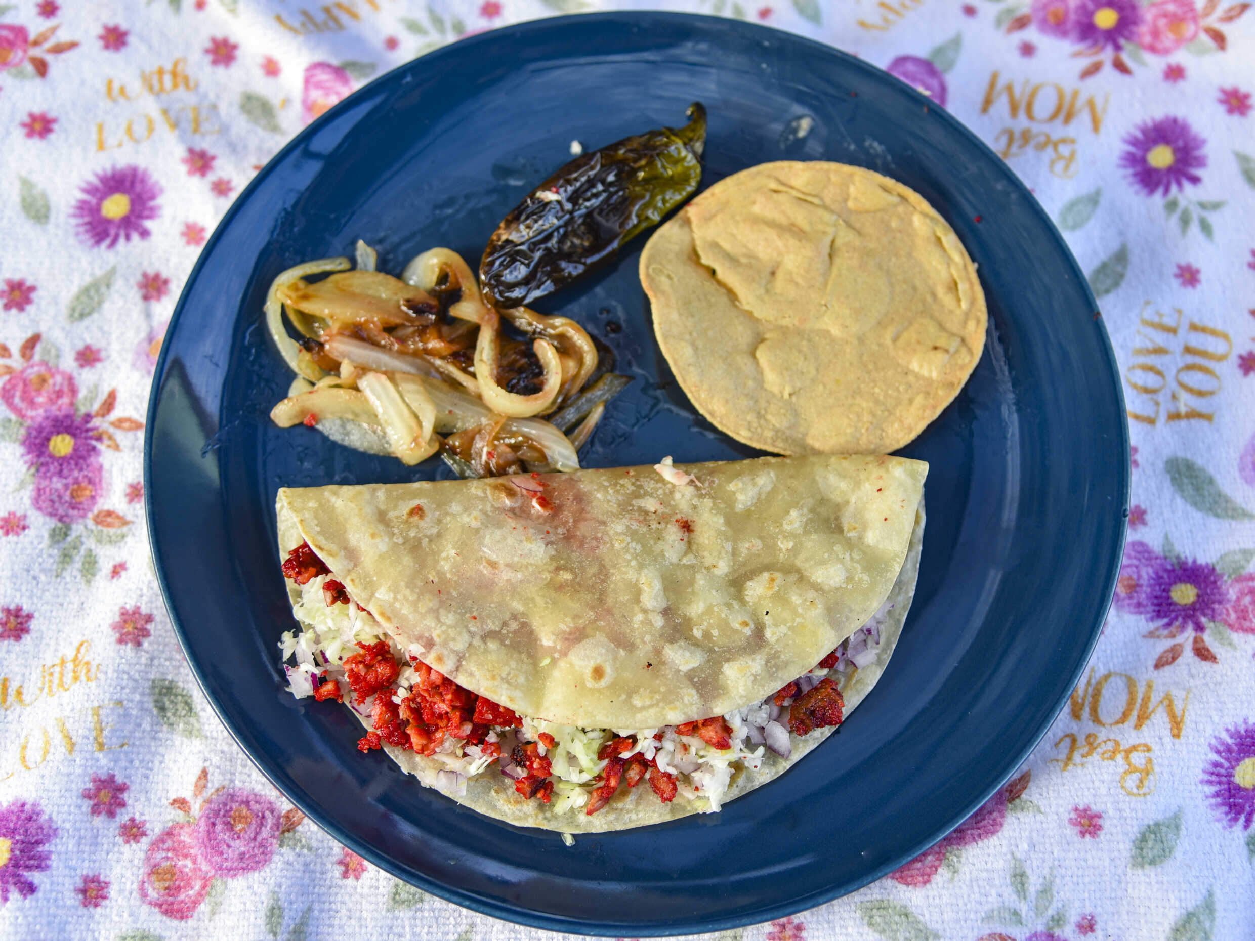 15 tacos de adobada de maíz + 4 aguas de sabor