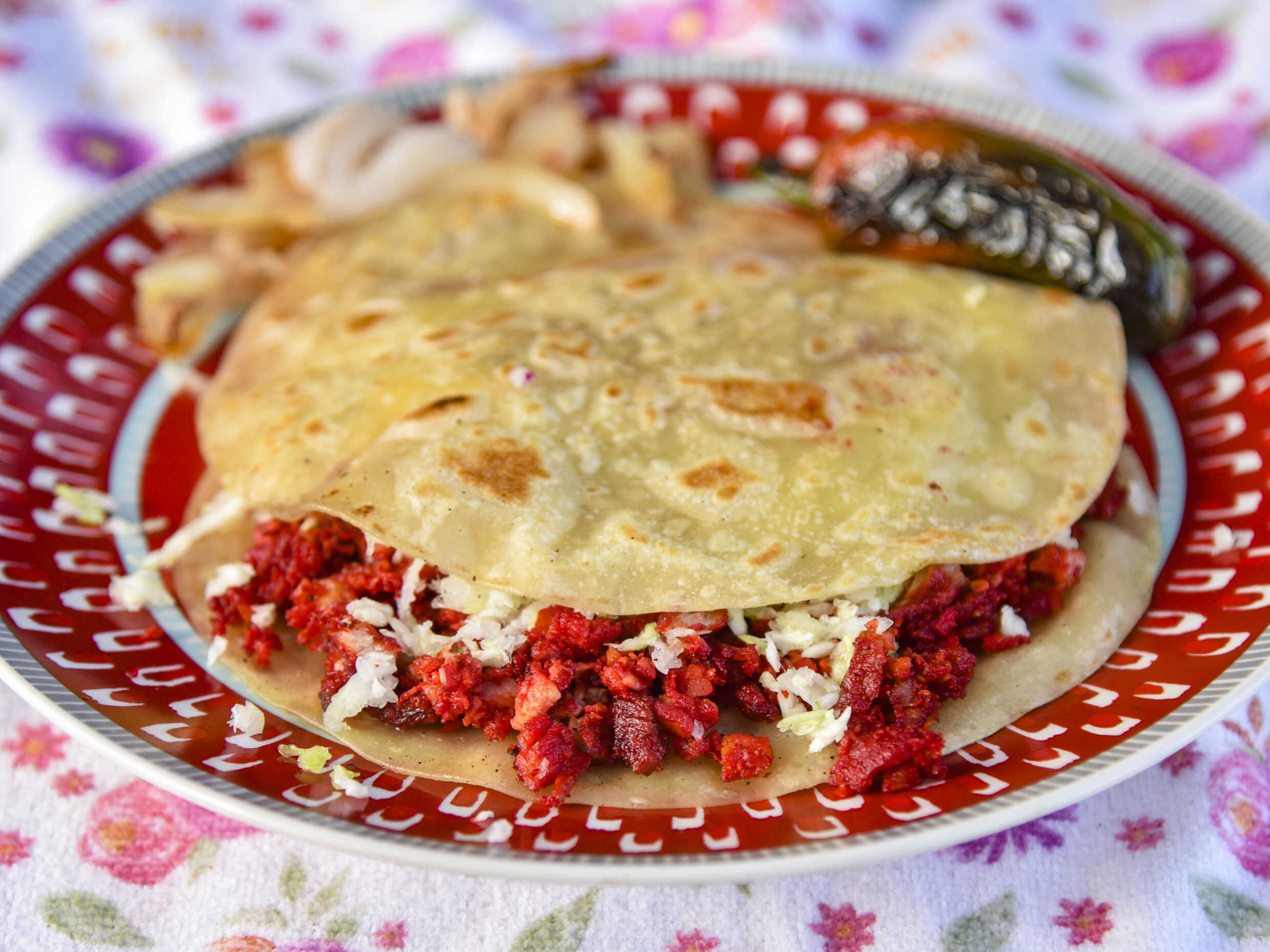 Taco de Adobada de Harina*3 + Agua de Sabor*1