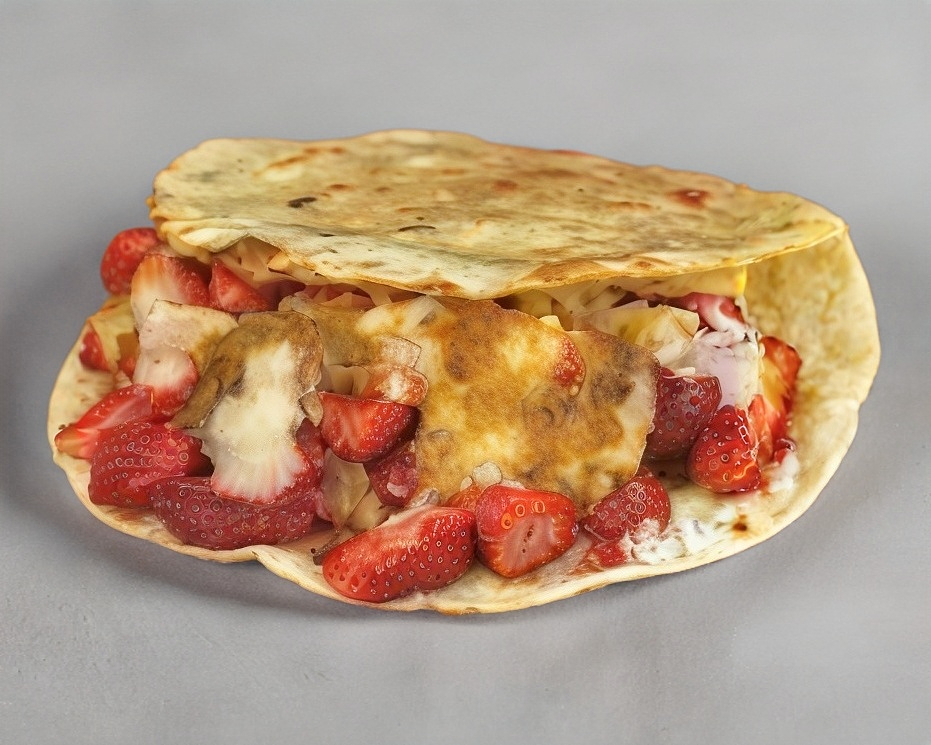Mixta con carne adobada, queso gouda, repollo, cebollita morada, cebollita guisada , un chile toreado y bañado de frijol