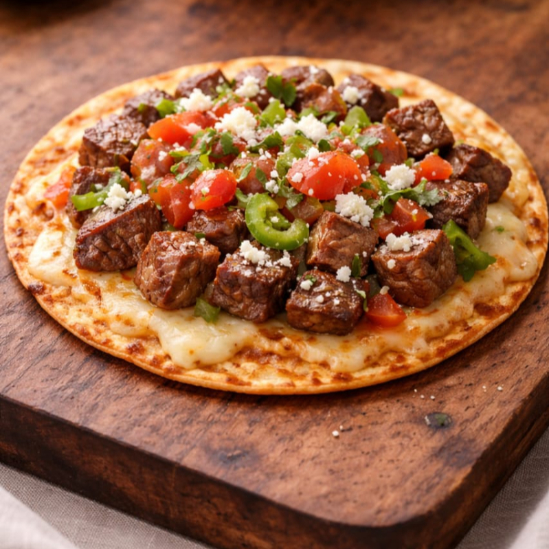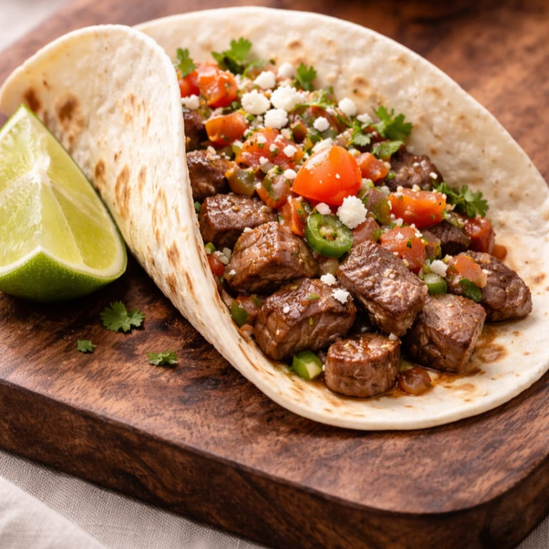 Tortilla de harina con carne, repollo, cebolla, salsa