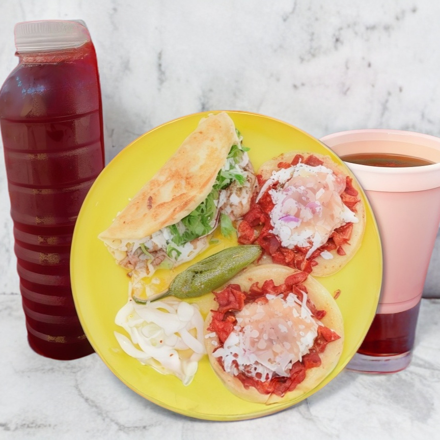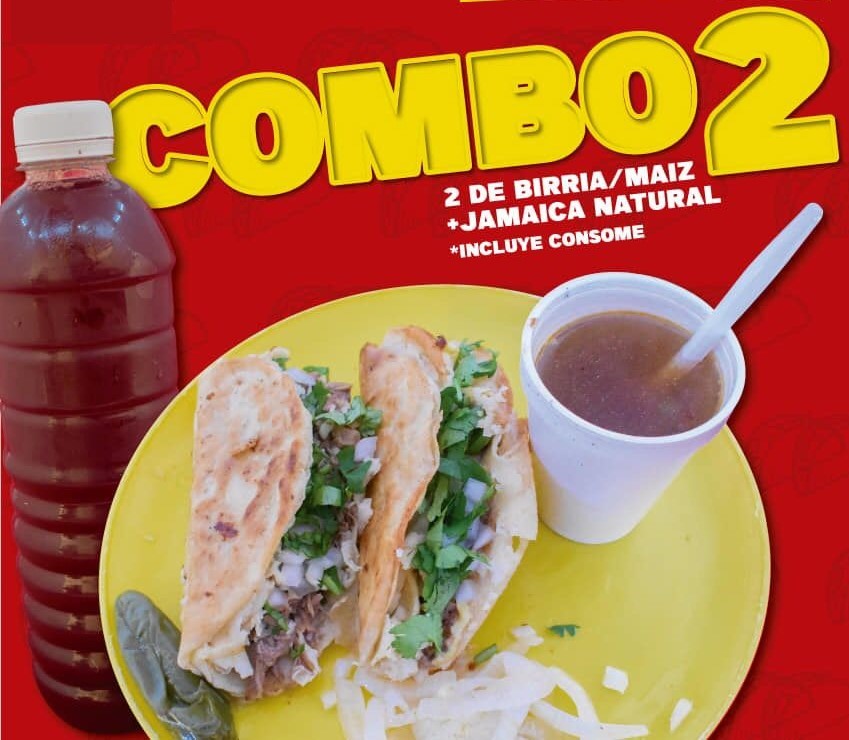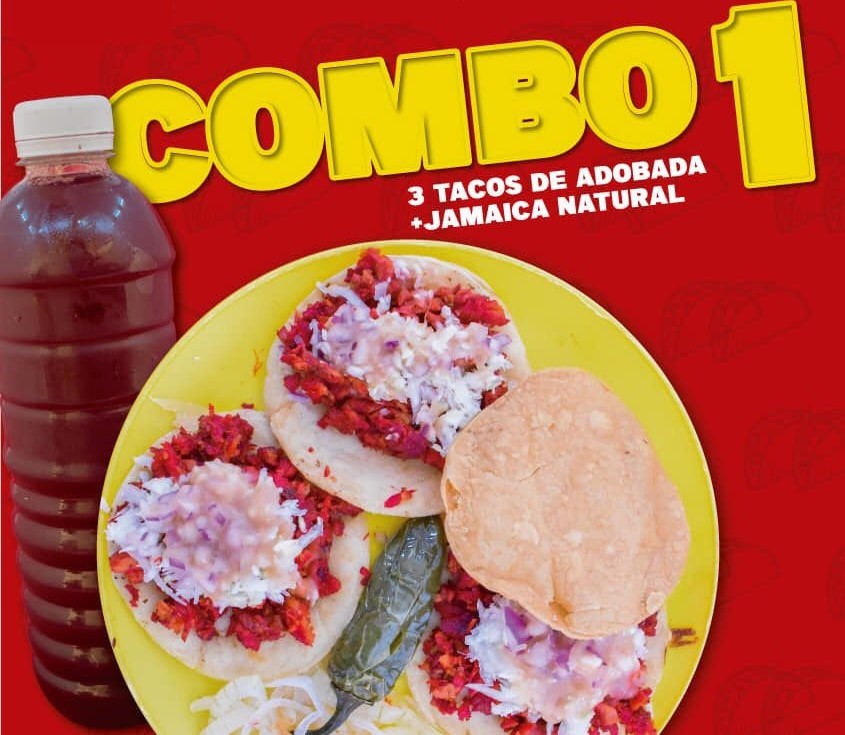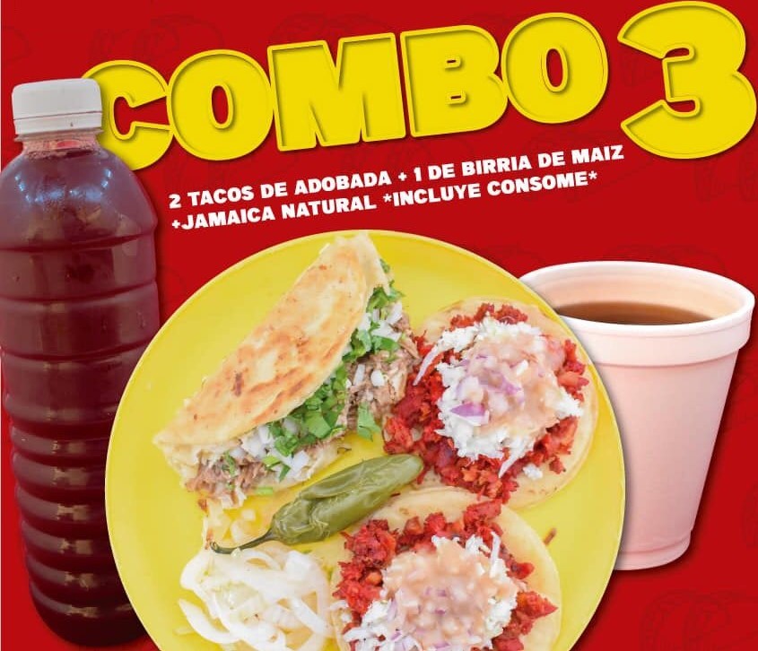 1 taco Birria, 2 tacos Adobada Maiz y 1 refresco