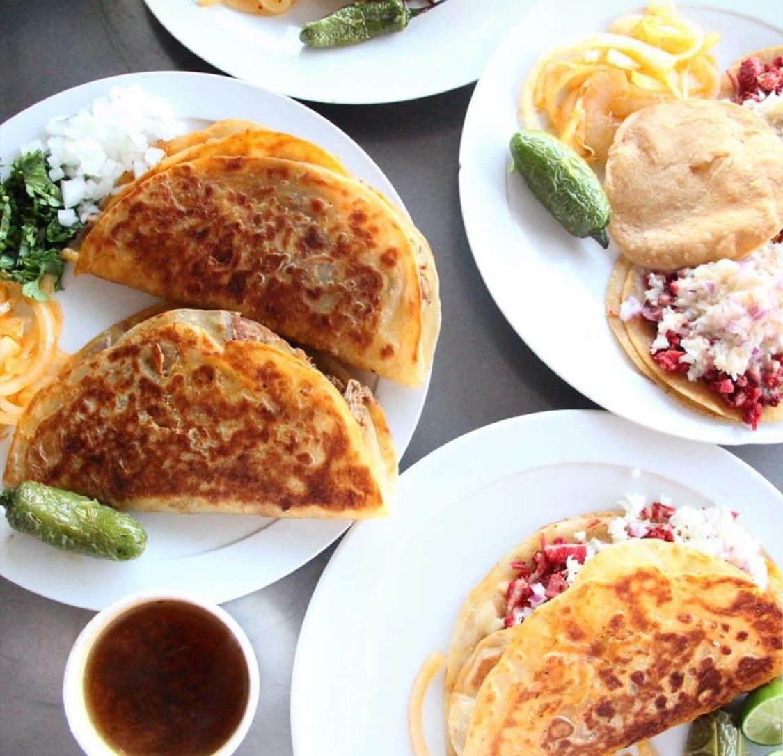 2 tacos Birria, 3 tacos Adobada Maíz y 2 refresco